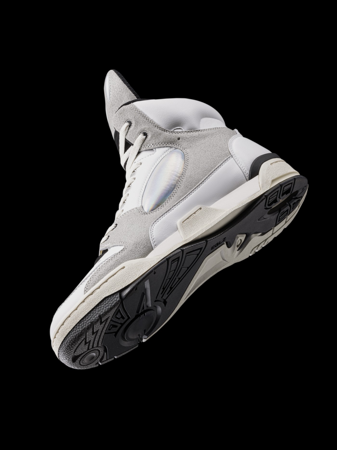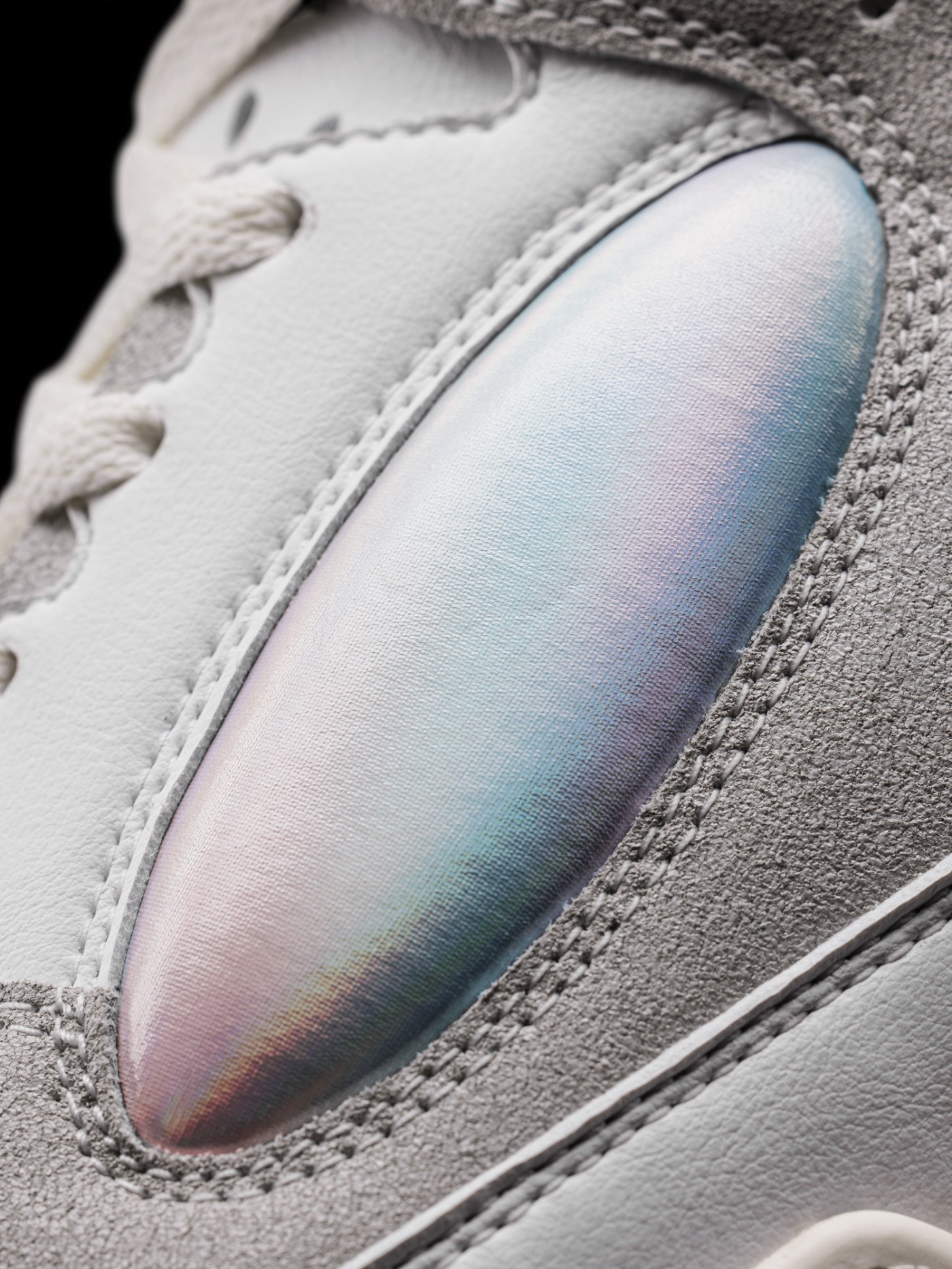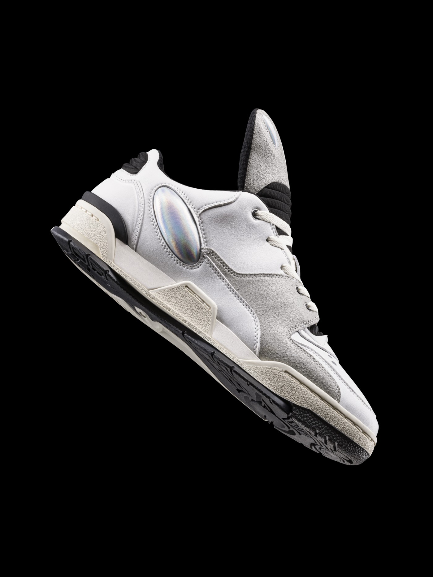 鞋面采用大面积皮质搭配麂皮材料打造,保证质感表现的同时,旨在对 80 年代的篮球鞋进行致敬。