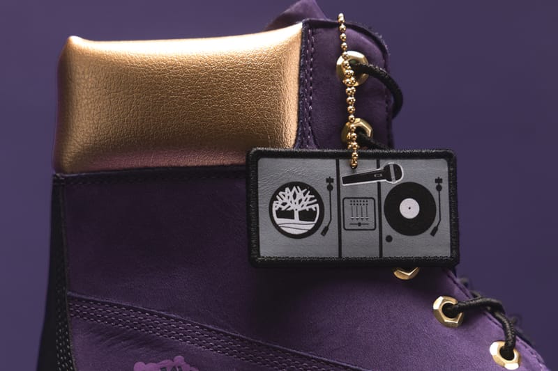鞋带吊坠处印有唱片、麦克风、Timberland 图案 Logo,彰显鞋款身份。