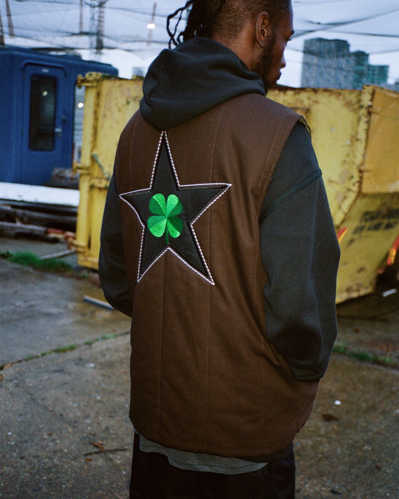 其中这件廓形 T 恤是小编最喜欢的,整体做旧的水洗质感,搭配绿色四叶草点缀,令人眼前一亮。