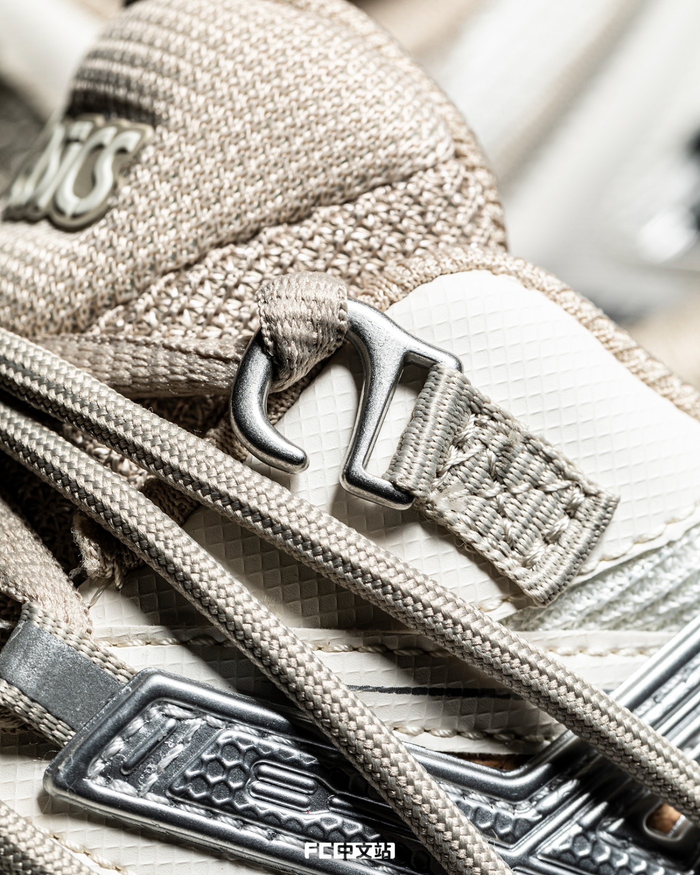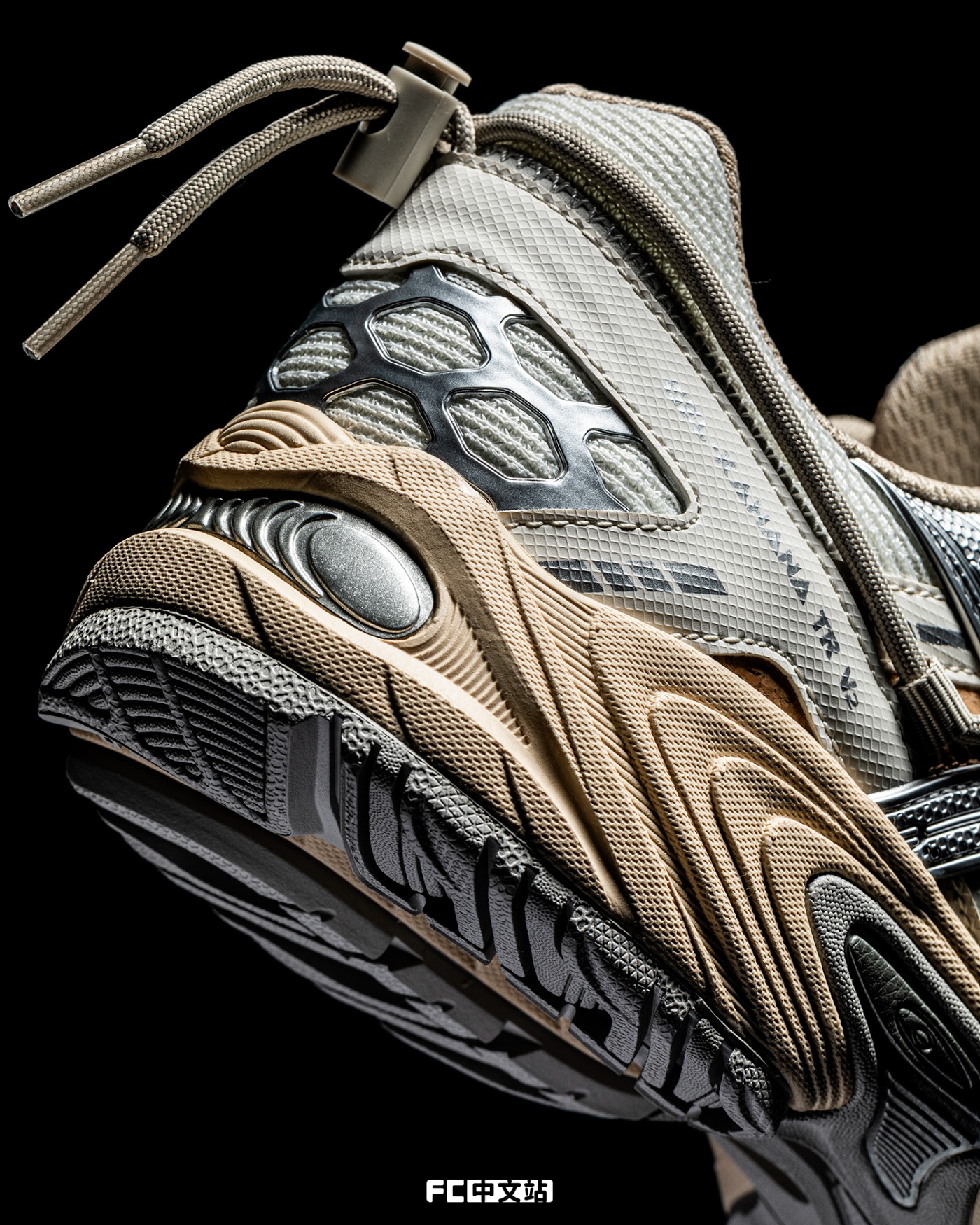 鞋身采用米白色为主调打造,配合银色以及亚麻色的点缀,使得本就拥有户外造型的同时,还兼具了几分老爹鞋的气质。