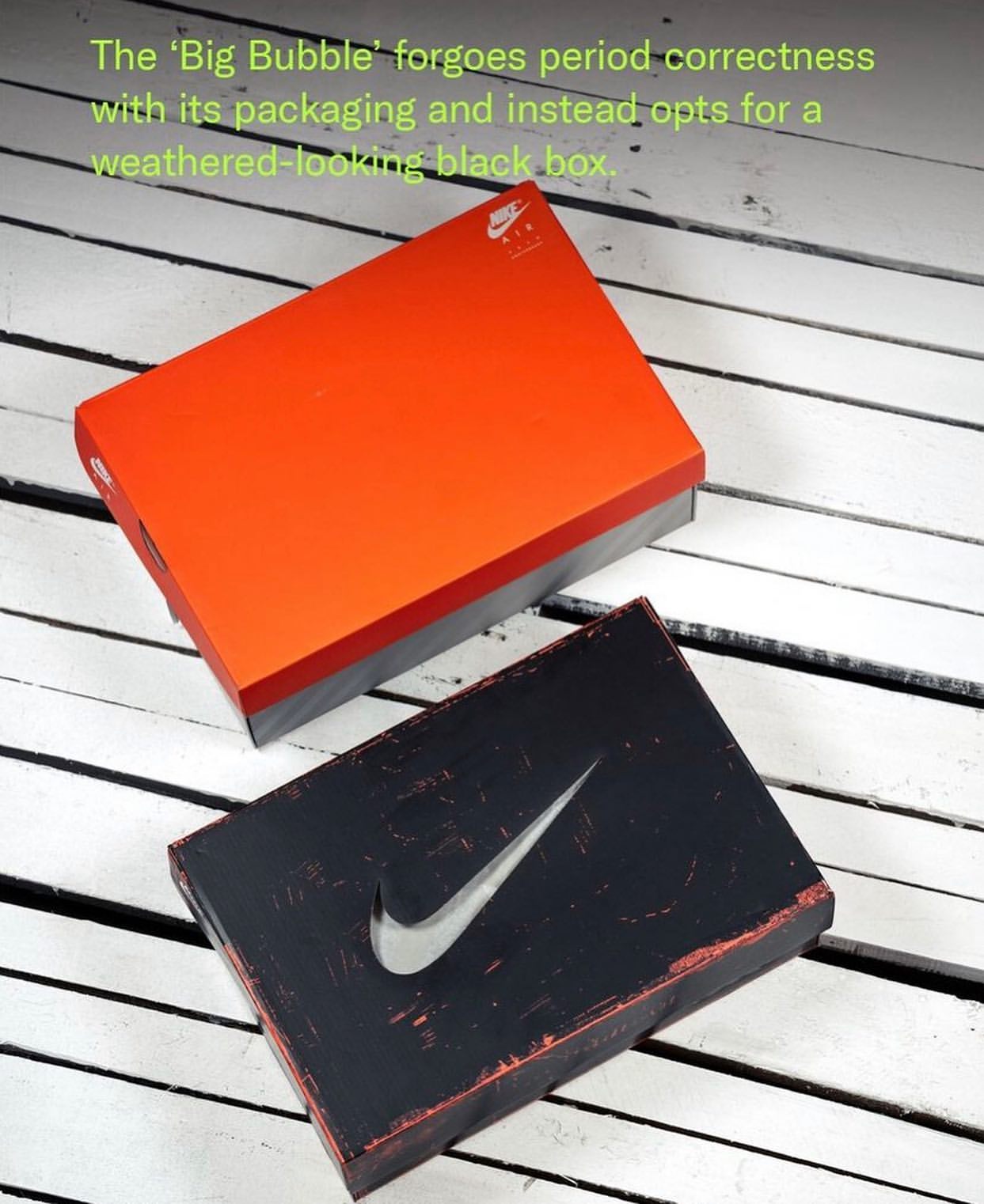 最讨喜的是鞋盒侧面呈现出镂空元素,模仿出 Air Max 1 中底造型。