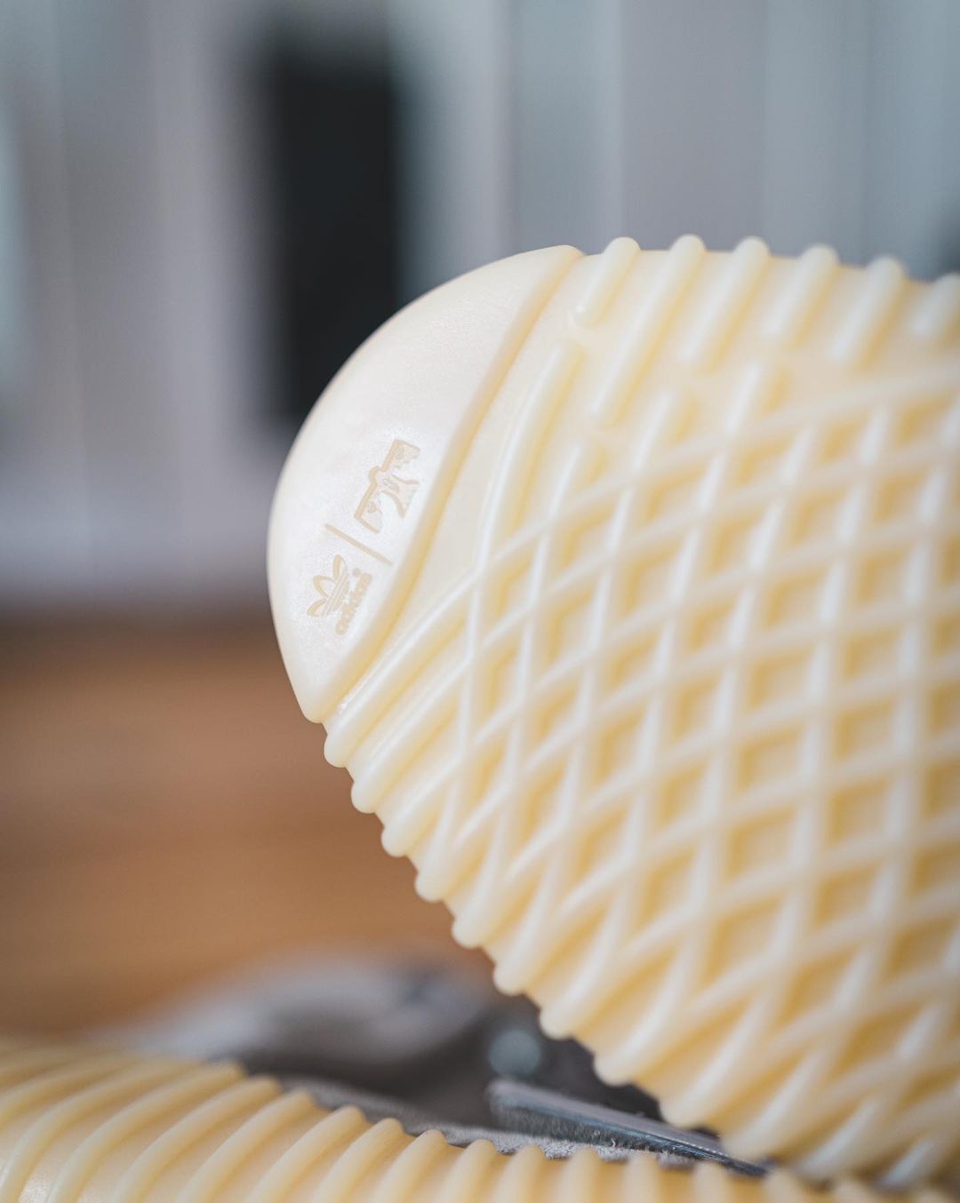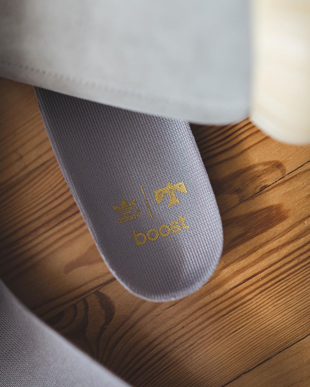 细节方面,除了绑带橡胶材质和市售版本有所区别外,还分别在鞋垫、鞋头和鞋面绑带上加入了 adidas 三叶草 Logo、Boost 字样。