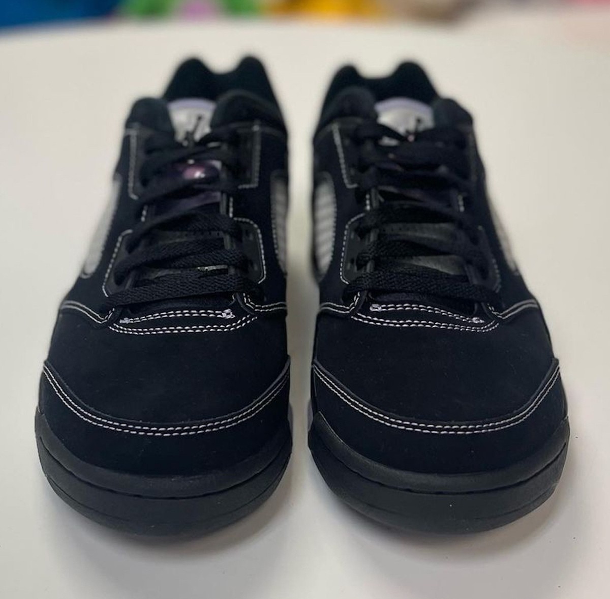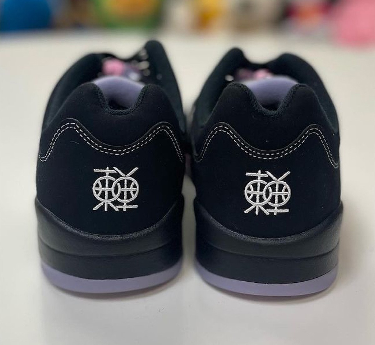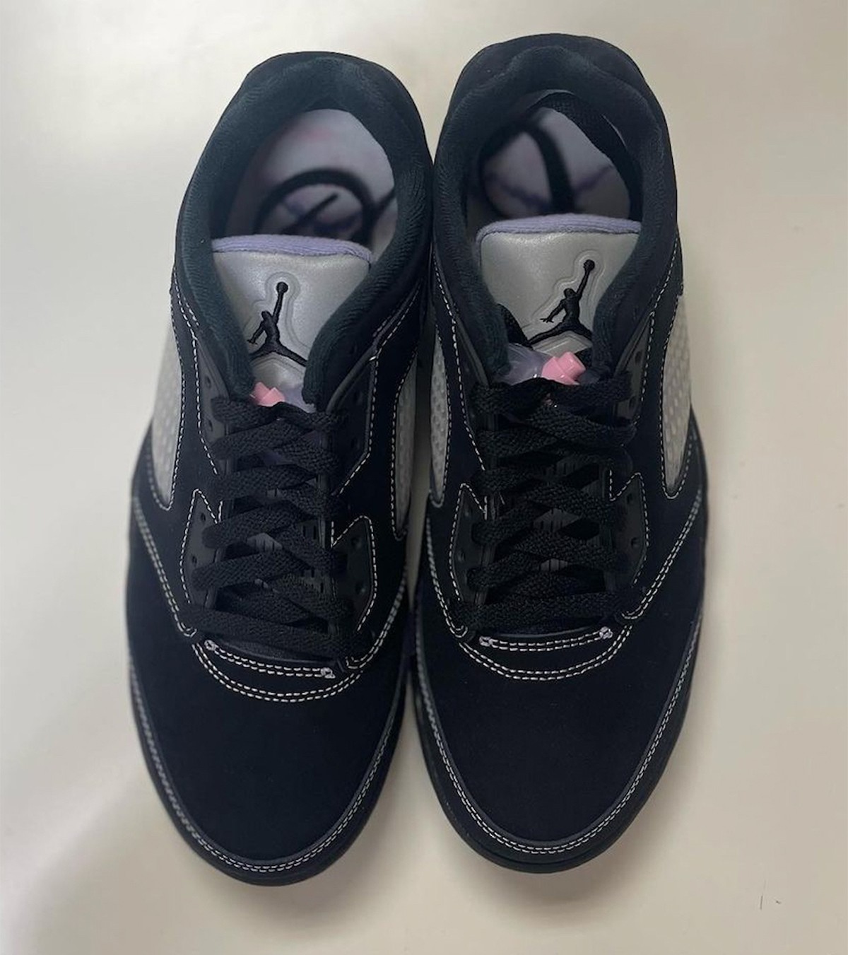 整双鞋使用了相对冷门的 Air Jordan 5 Low 为蓝本进行创作,通体黑色的鞋身辅以粉色妆点,造型格外简约。