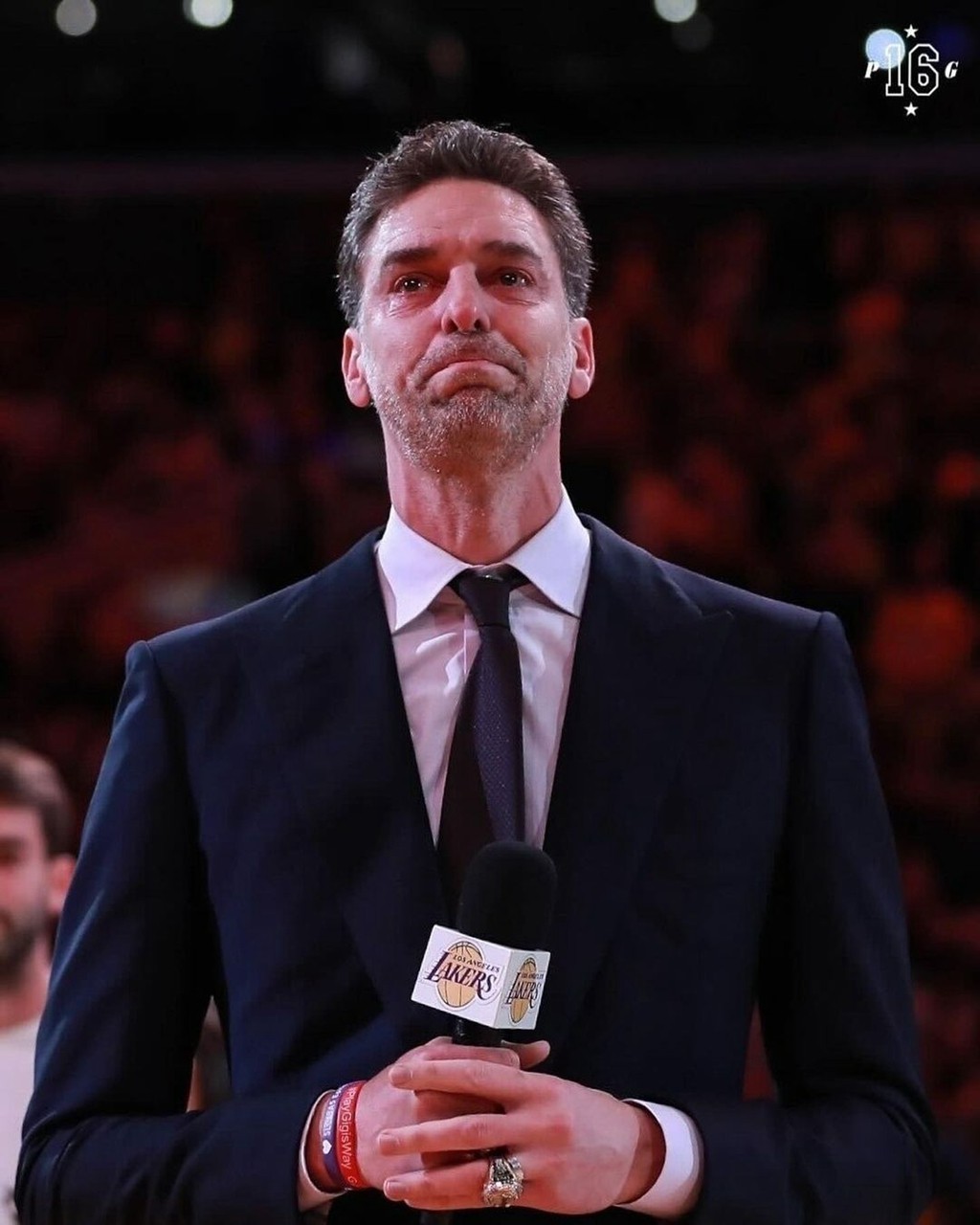 湖人两连冠功勋,“欧洲之王” 保罗·加索尔,正式在湖人退役了自己的 16 号球衣。