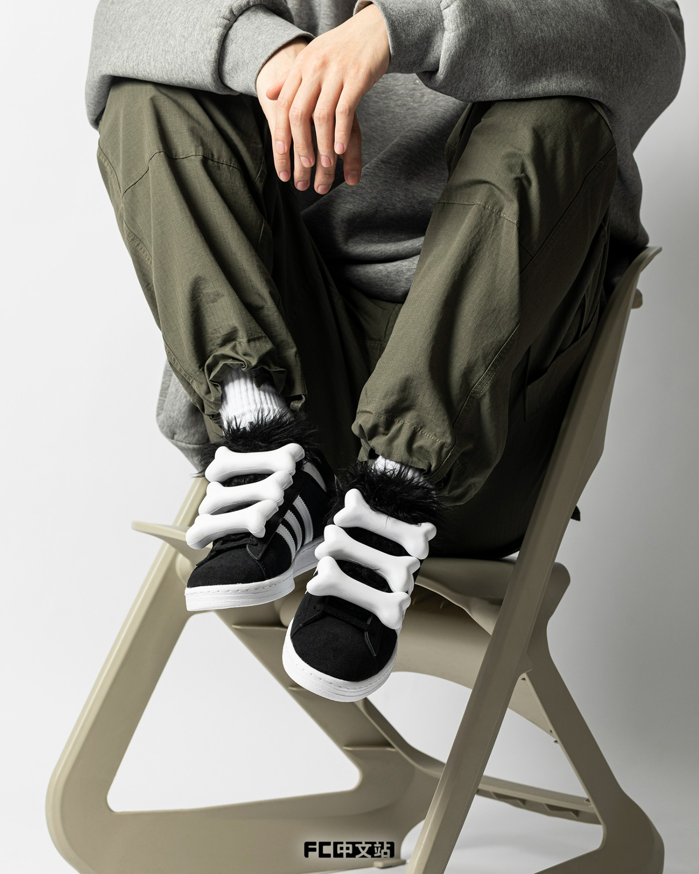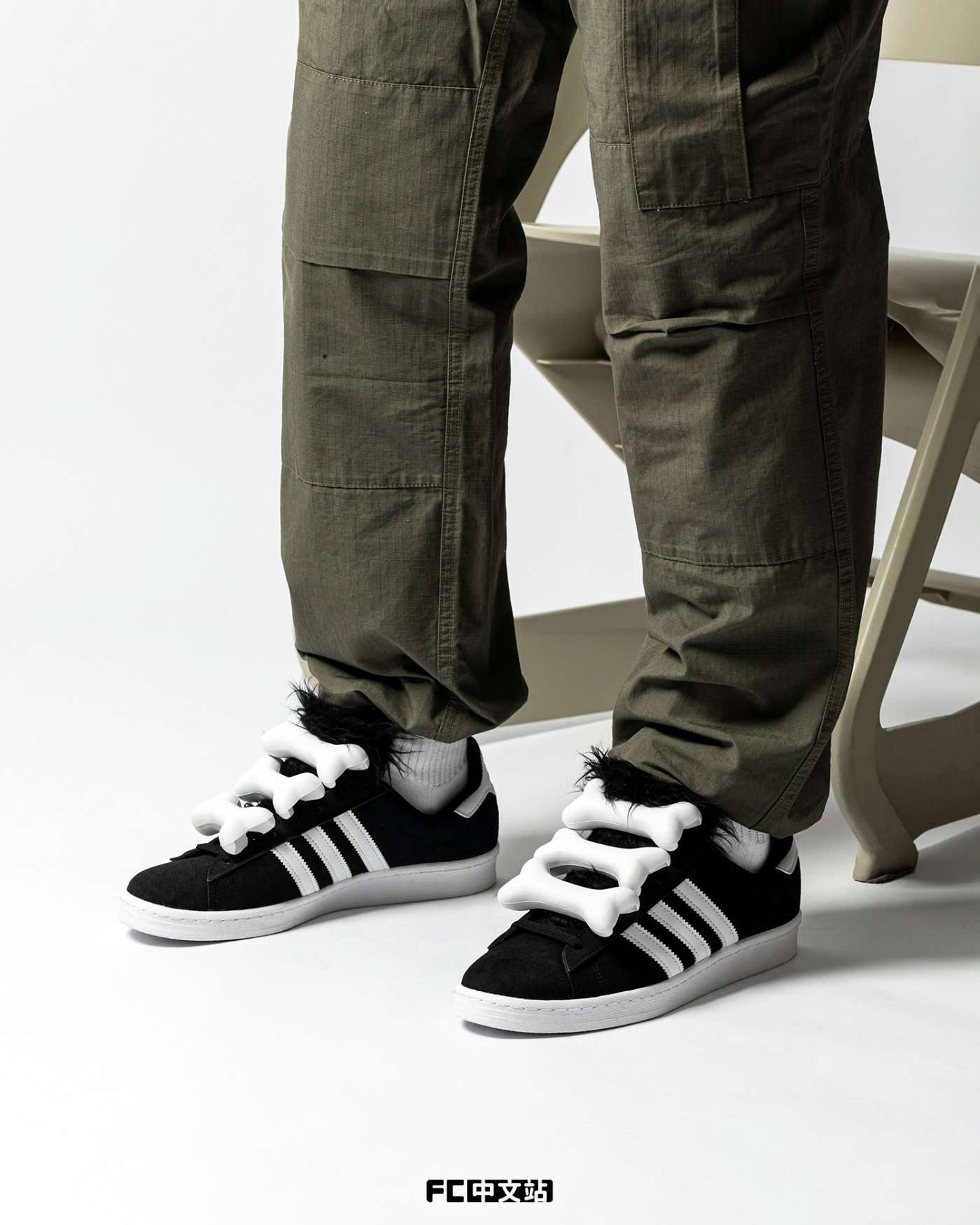 在经典 Campus 80s 鞋型上额外添加了骨头配饰,让人一眼就能认出这是 Jeremy Scott 的联名鞋。