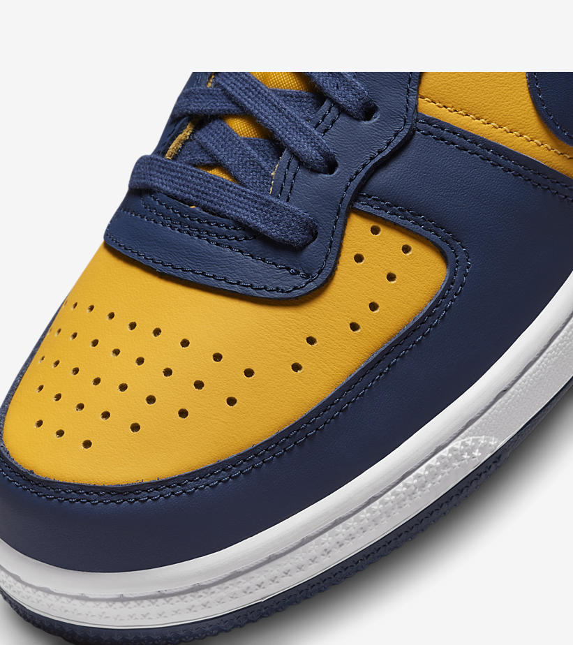 整双鞋采用黄色和蓝色搭配,呈现出经典的「密西根」密西根装扮。