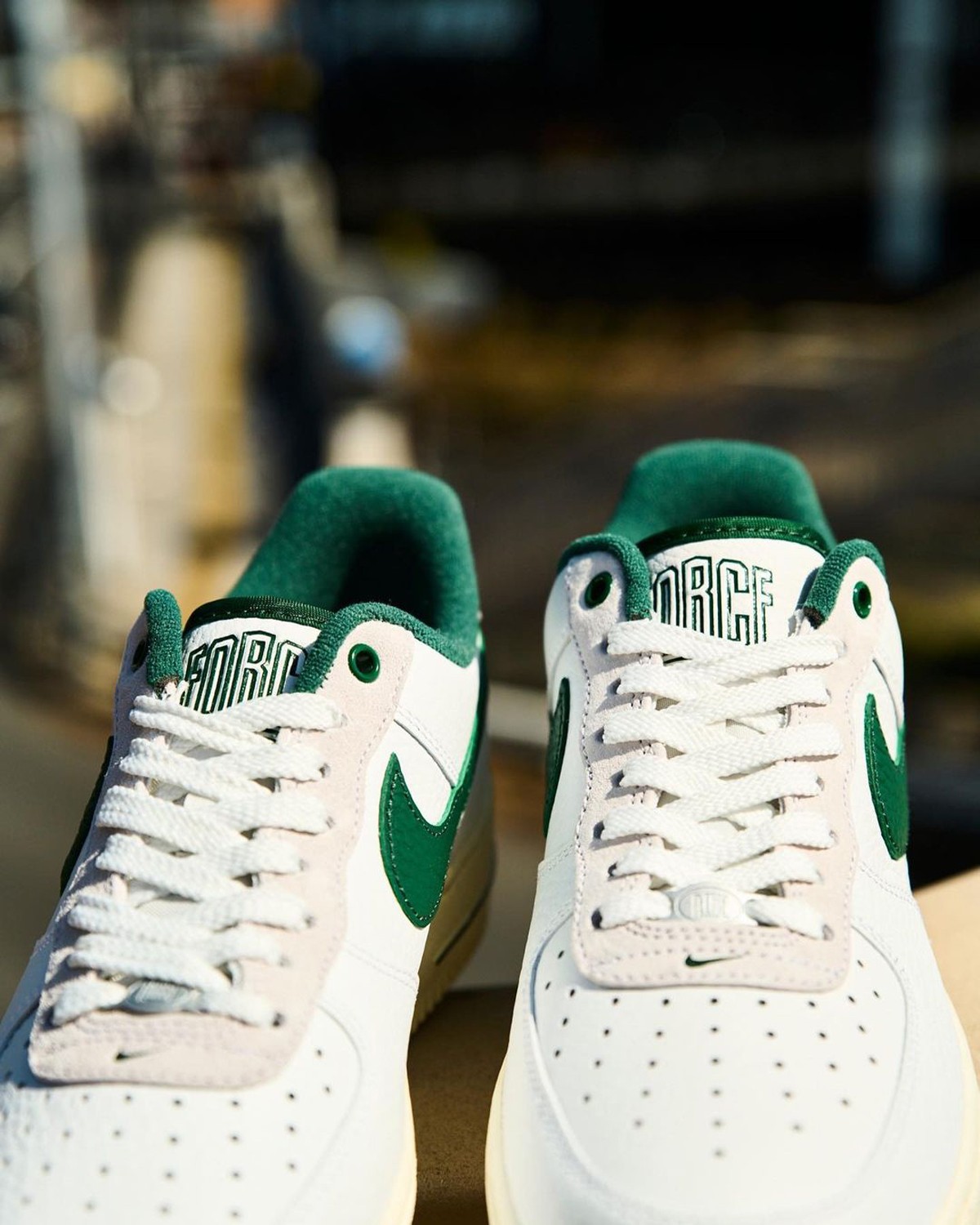 细节方面,鞋舌区别于以往的标签设计,改为了花体的 Nike Force 1 字样,彰显出了配色特殊性。