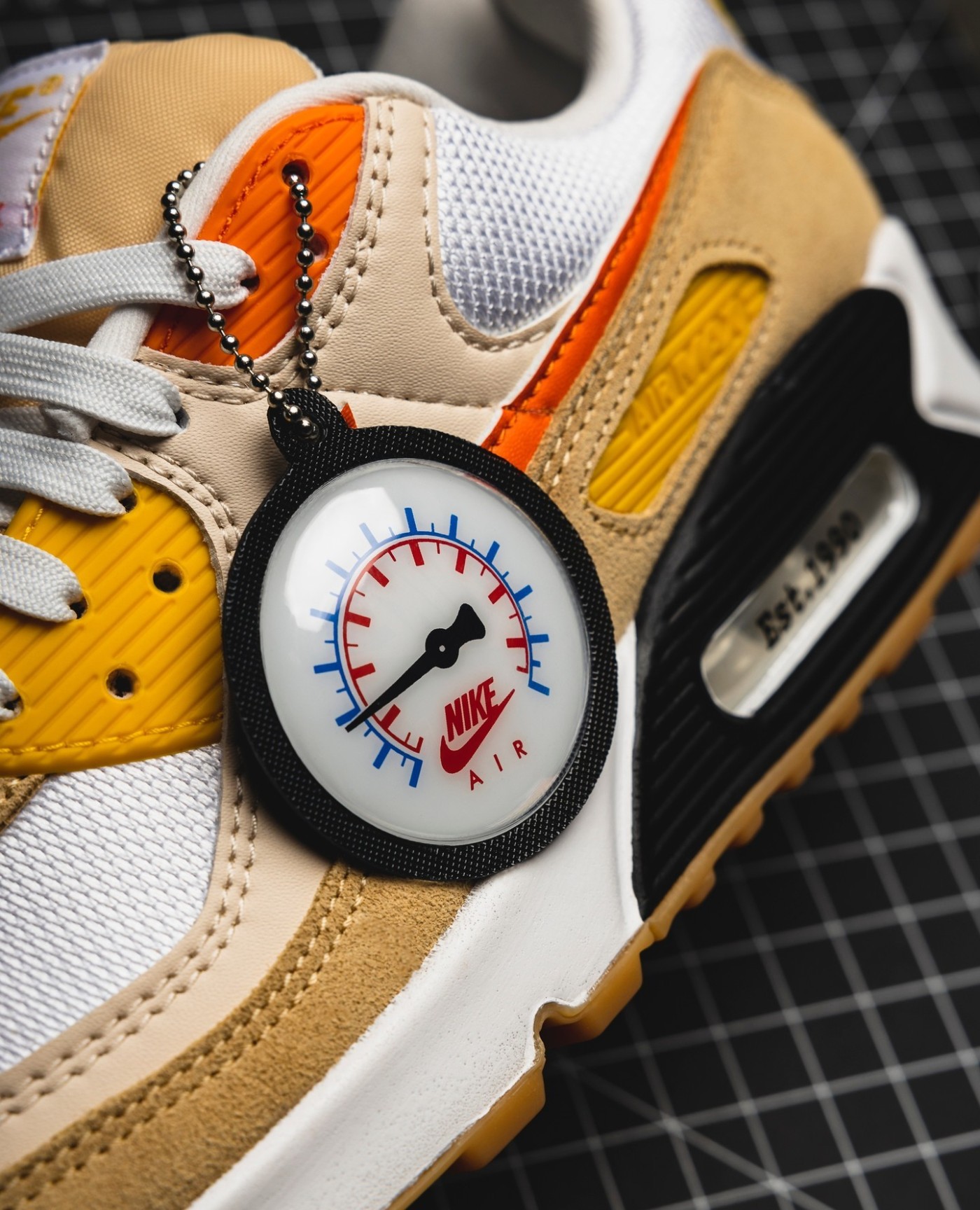 特别之处在于随鞋附赠的吊牌采用气压表的造型示人,鞋垫通过 Air 气垫设计手稿及 Frank Rudy 签名赋予其特殊的纪念意义。