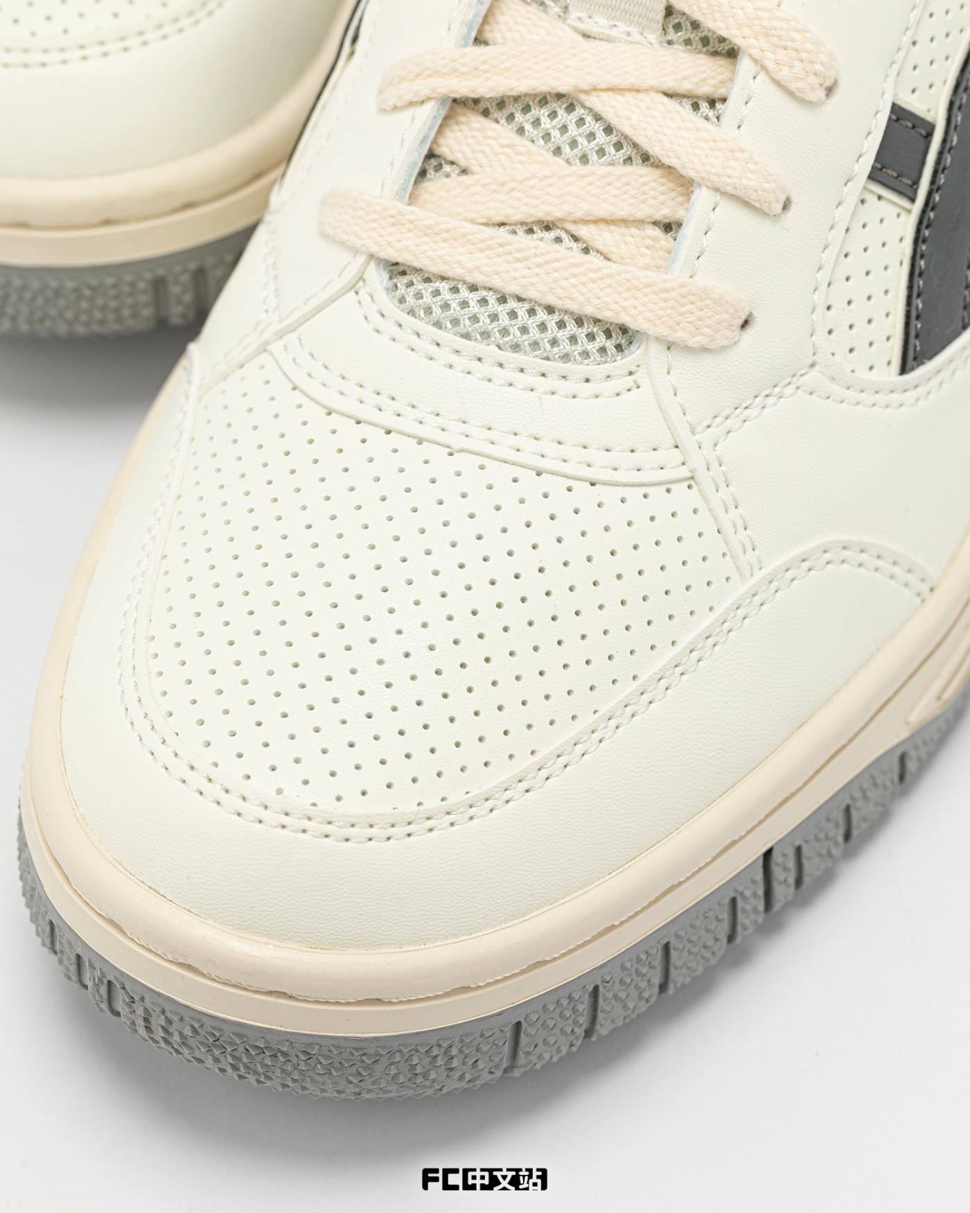 鞋身使用全皮革面料进行包裹,搭配上鞋头、侧身的网眼设计,使鞋款在拥有着优秀质感的同时,也不乏透气性。