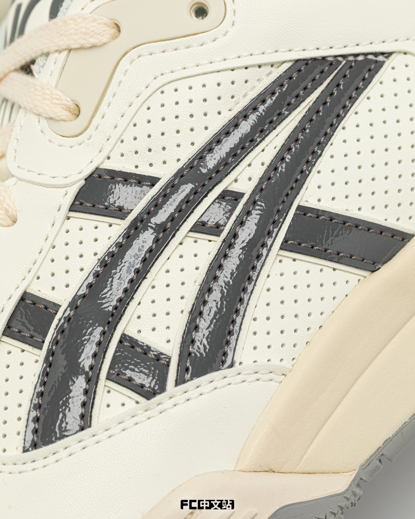 侧身 ASICS 经典的虎爪 Logo,加入了磨损、老旧后的效果,将「篮板青春」的主题彰显。