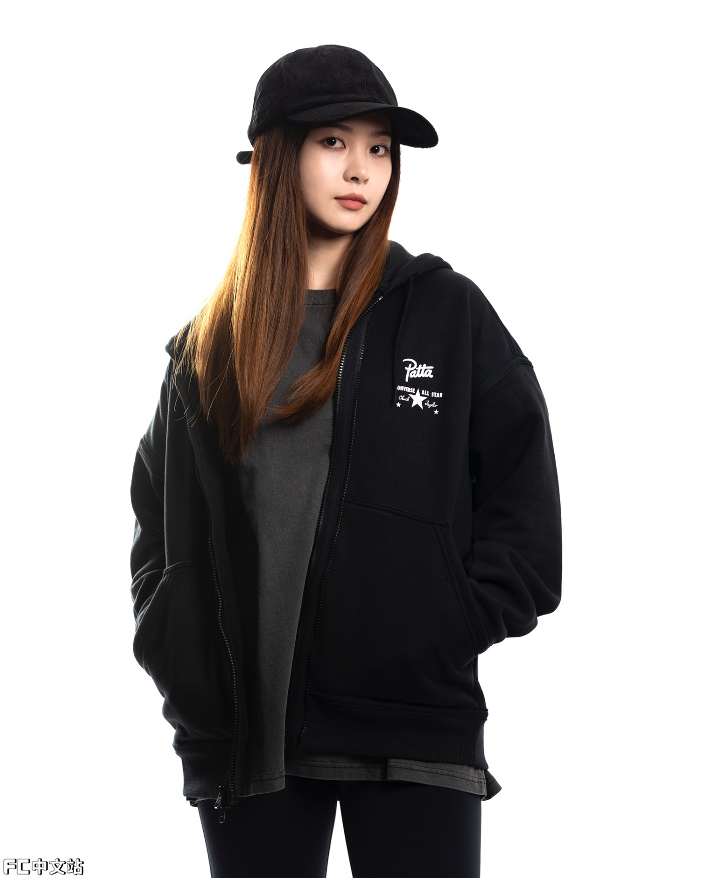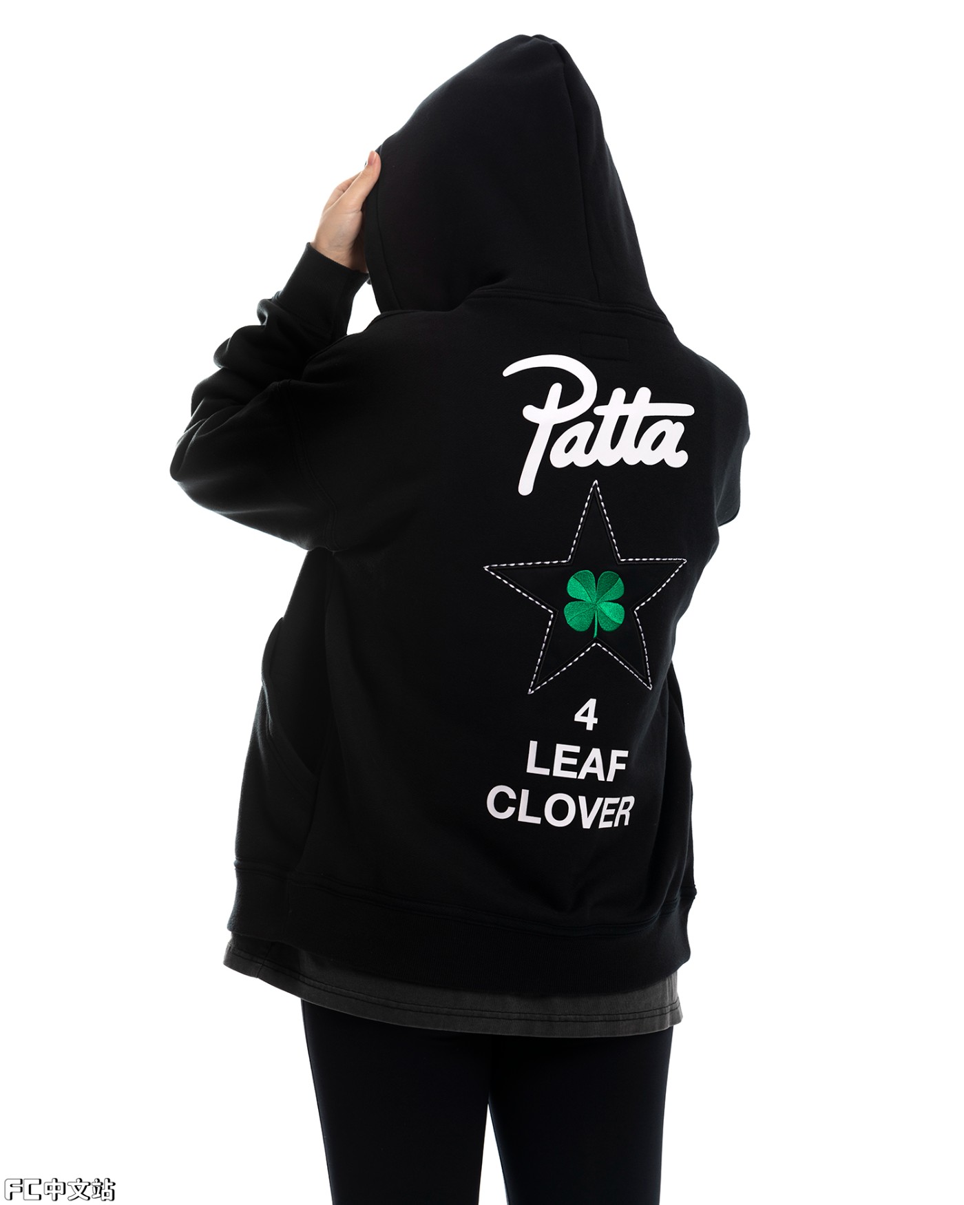 拉链连帽卫衣与短袖相同,一样是在胸口处和后背部分印有代表着 Patta 和 Converse 的 Logo。
