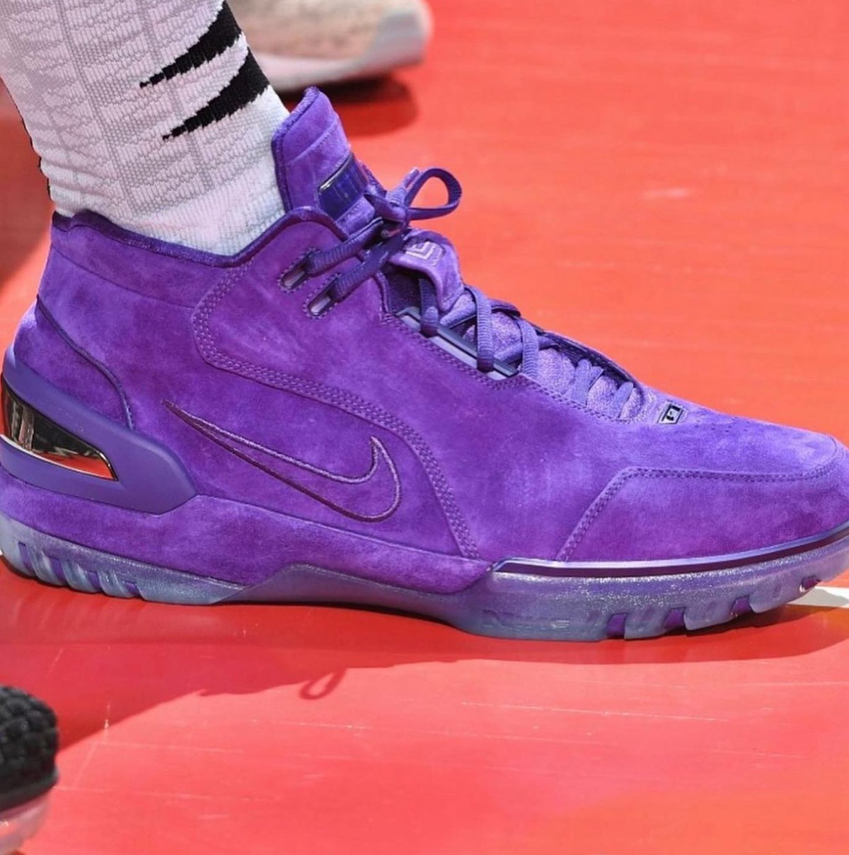 中底同样以紫色呈现,配置方面暂时不得而知,但有传闻称,中底将会保持元年版本的前 Zoom 后 Air Sole,如果真的可以原汁原味的复刻,相信也是圆了不少詹蜜的梦。