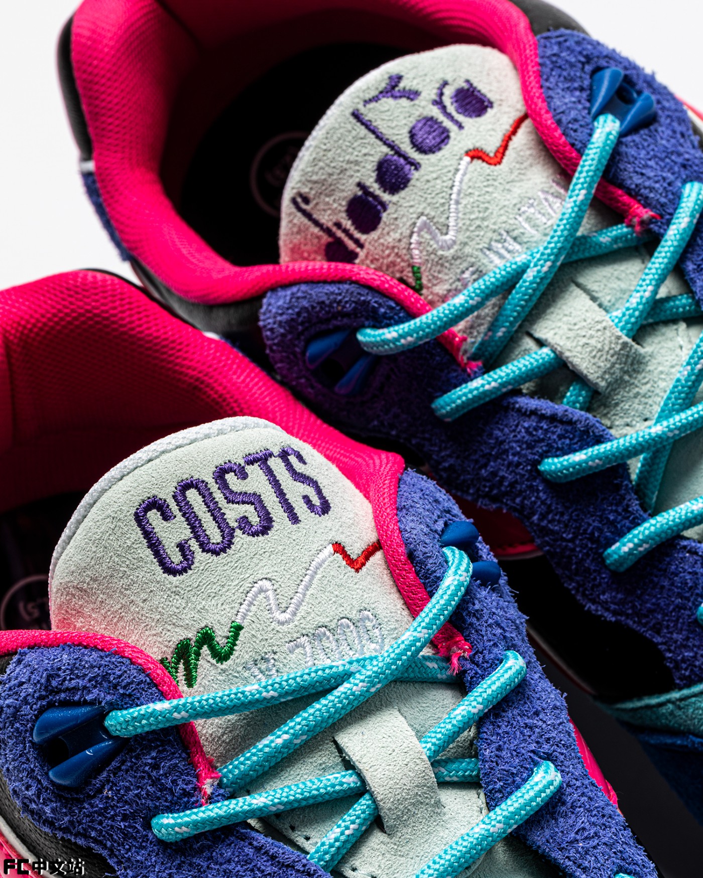 细节方面,鸳鸯的鞋舌上分别写有「COSTS」和「Diadora」字样,显示了联名身份。