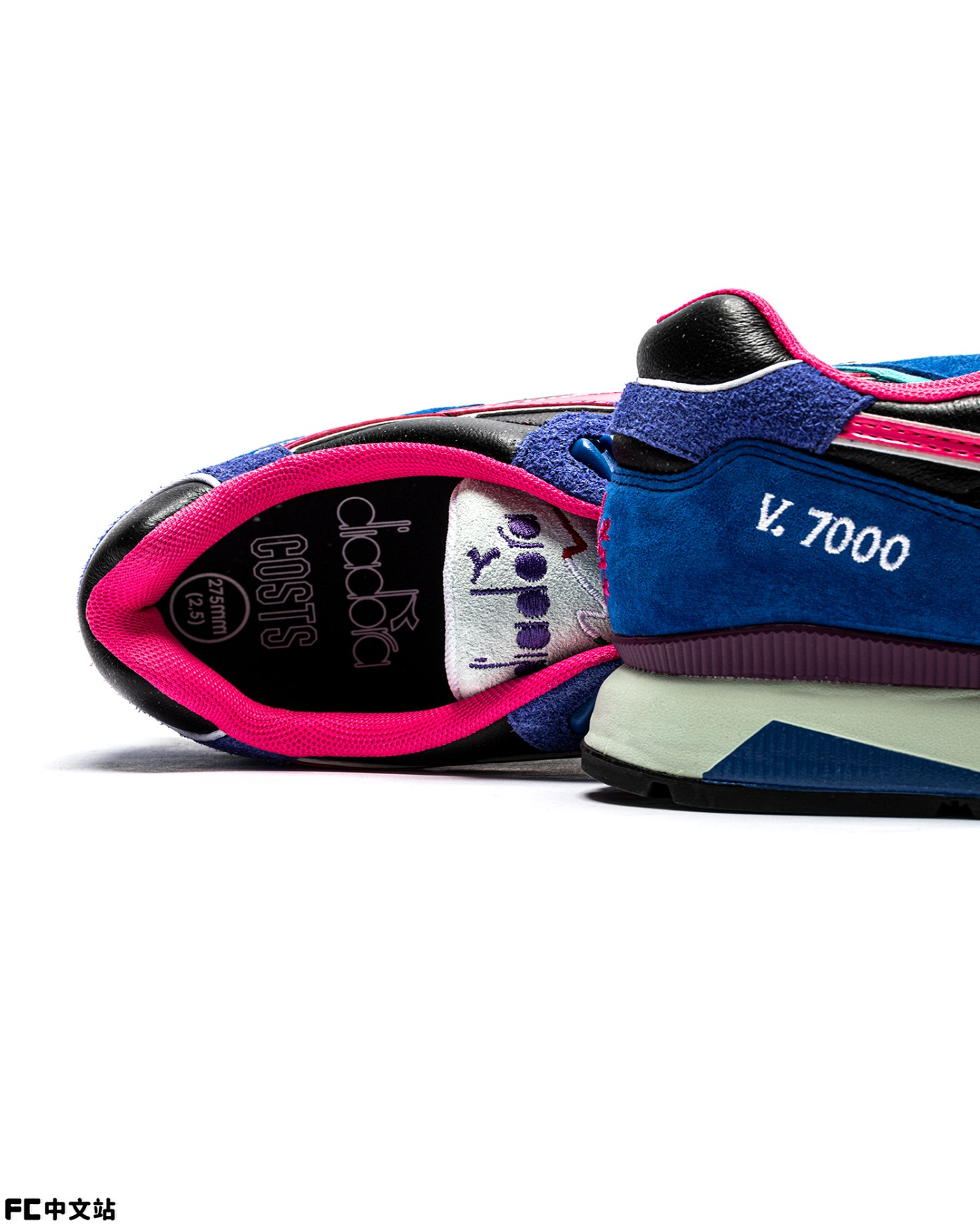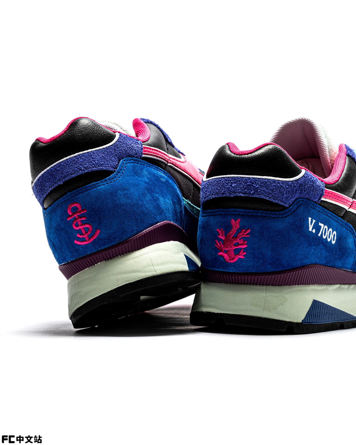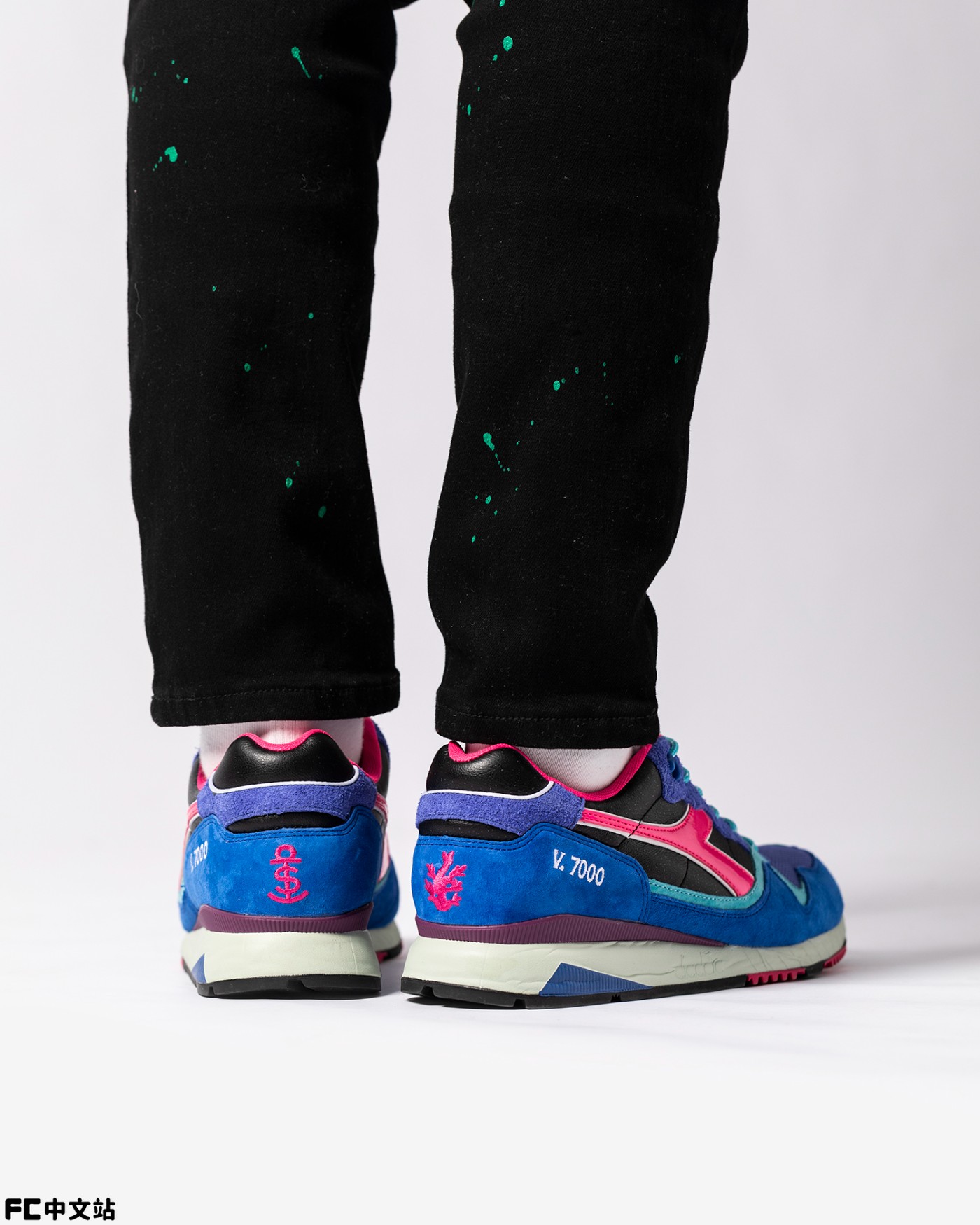 此次的全新联名以经典的 Diadora V7000 为蓝本进行创作,配色方案选择了以「珊瑚」为主要设计灵感,将环保意识融入了设计当中。