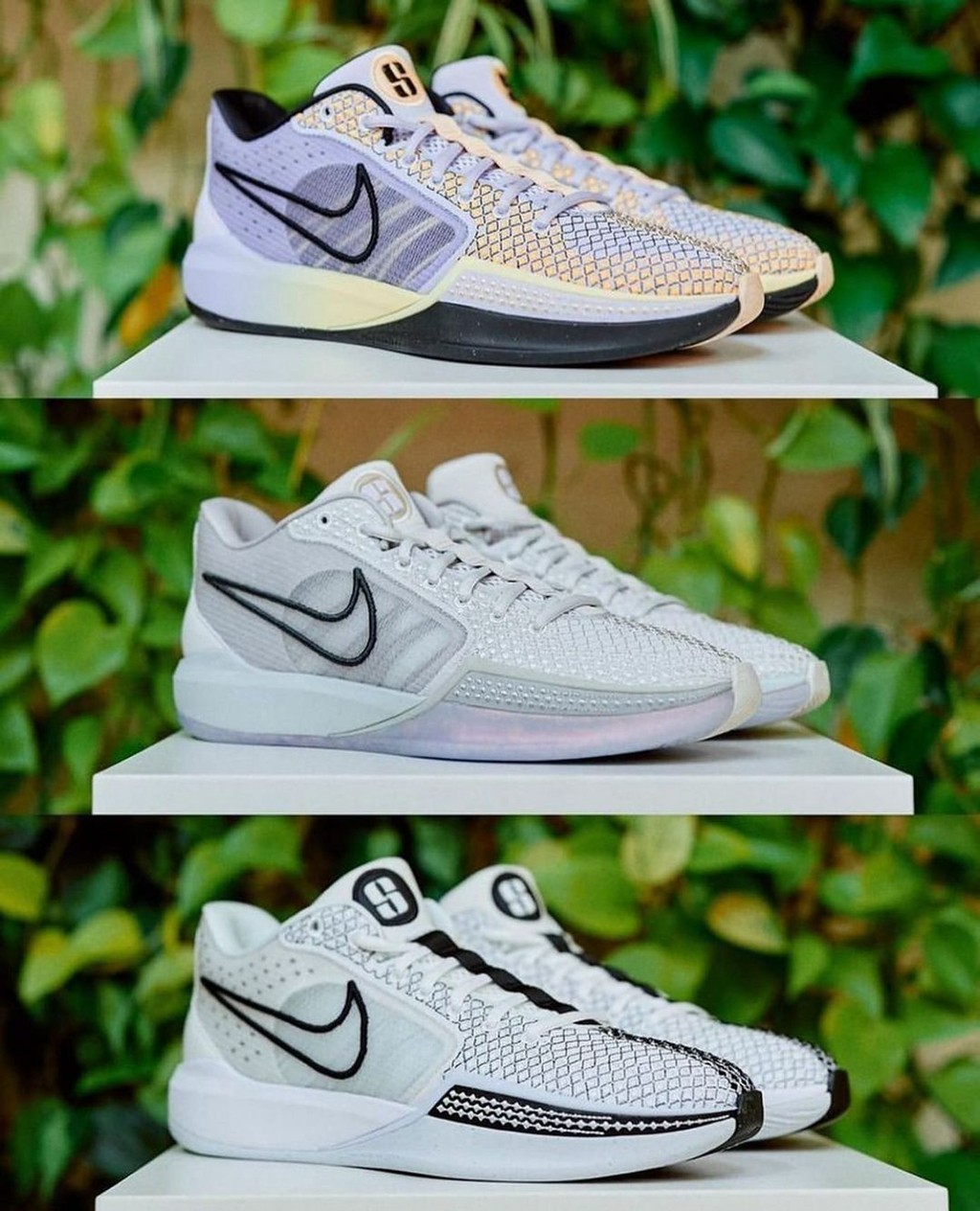最近这双 Nike Sabrina 1 迎来更多配色曝光,除了之前已经见过的首发配色外,还有黑白和黄紫渐变两款。
