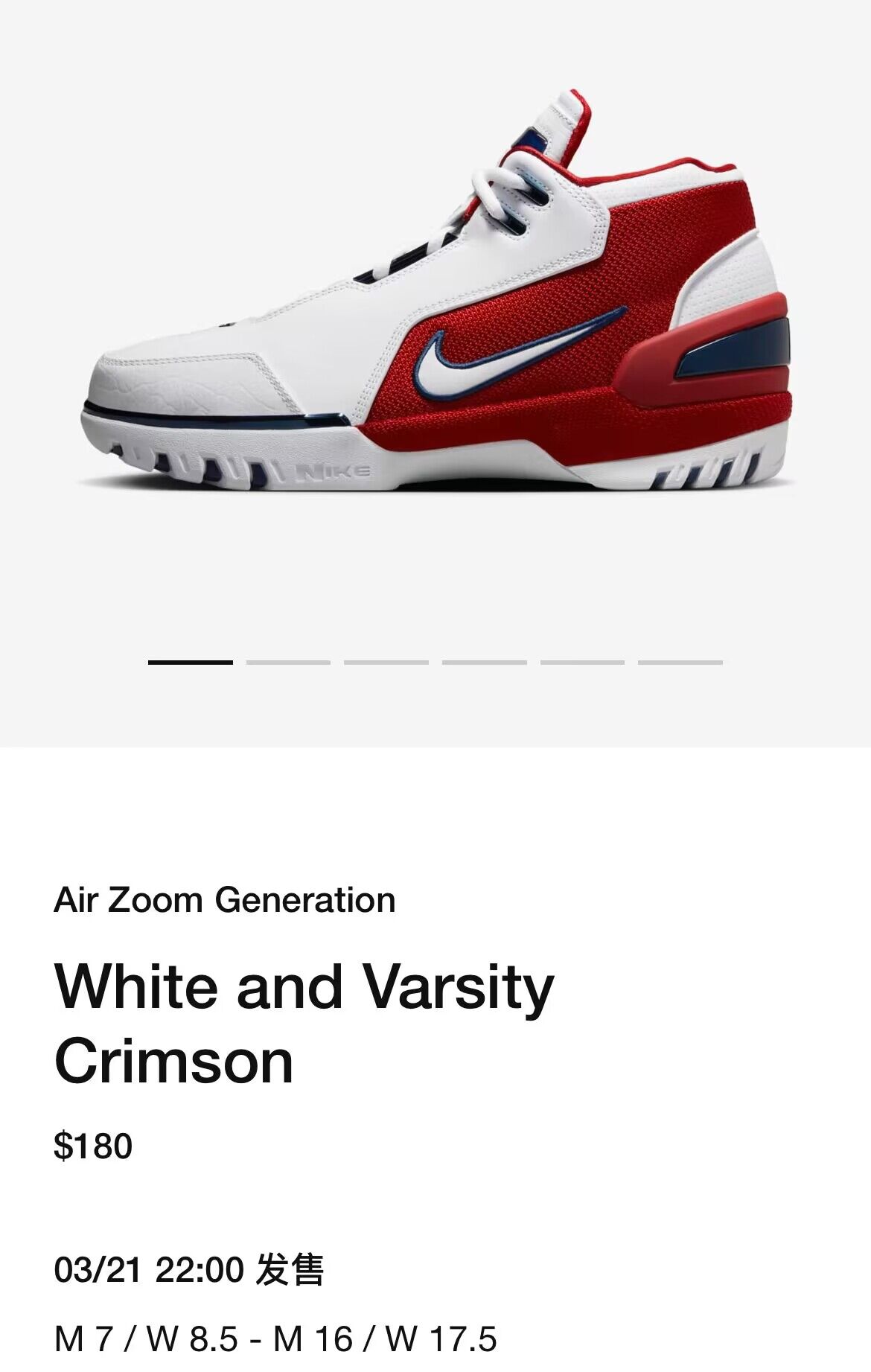 其中,复刻呼声最高的 Nike Air Zoom Generation “1st Game” 现已上架美区 SNKRS APP,将于 3 月 21 日发售。