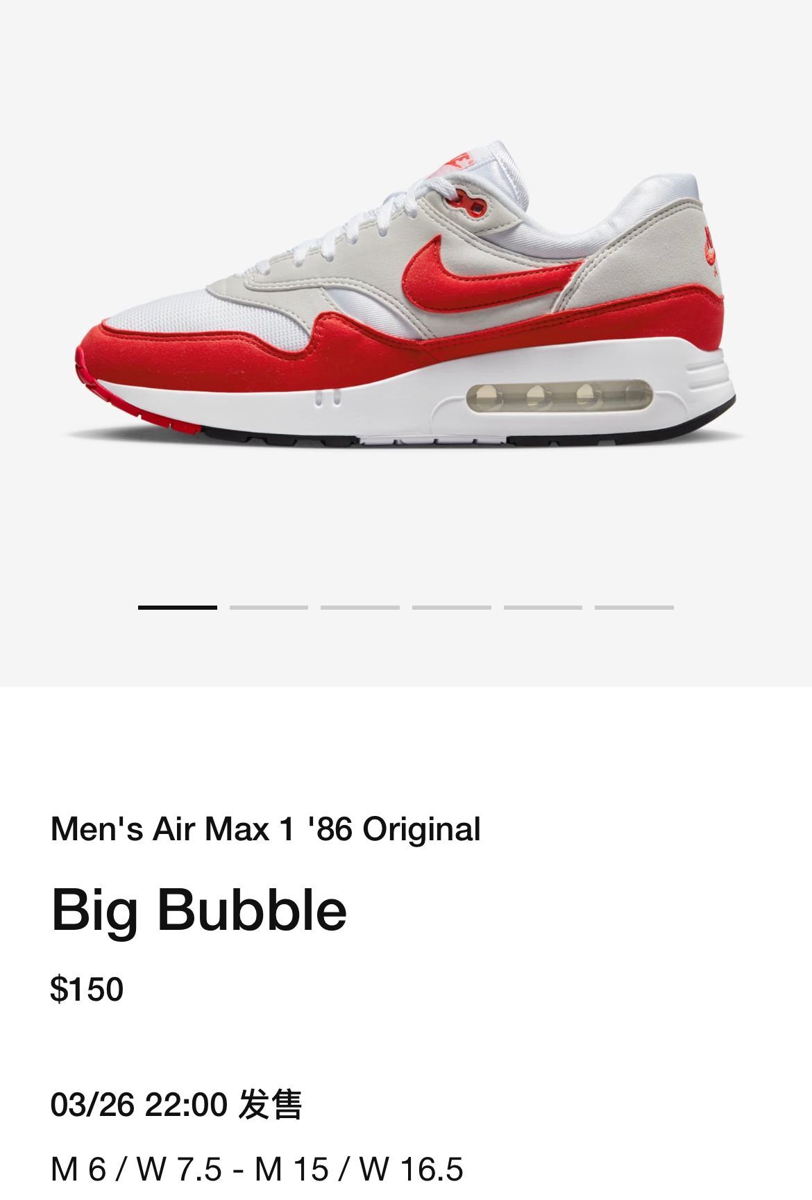 目前,Nike Air Max 1 ’86 “Big Bubble” 现已上架美区 SNKRS APP,将于 3 月 26 日发售,相信不久国区也将上架,大家敬请期待。