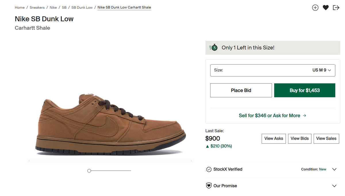 传闻称,此次联名将采用 Nike 目前人气最高的 Dunk SB 为蓝本,配色灵感使用 2004 年版本的 Carhartt x Nike SB Dunk Low,要知道这双鞋款目前市价依然维持在万元左右。