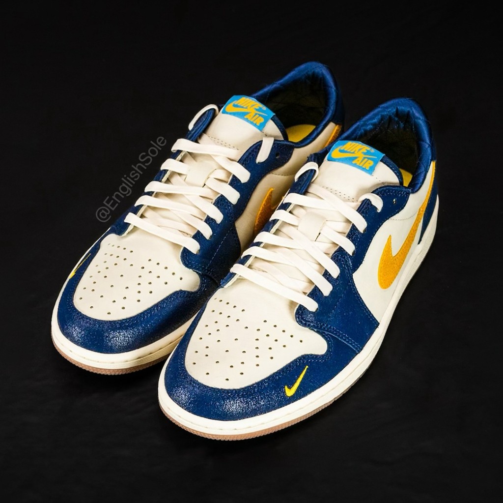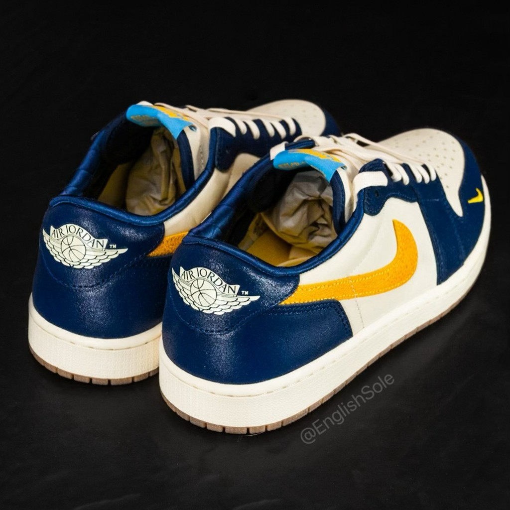 值得一提的是,此前曝光的北卡 Air Jordan 1 Low “UNC” PE 与这双的细节设计如出一辙,大概率是同一系列。