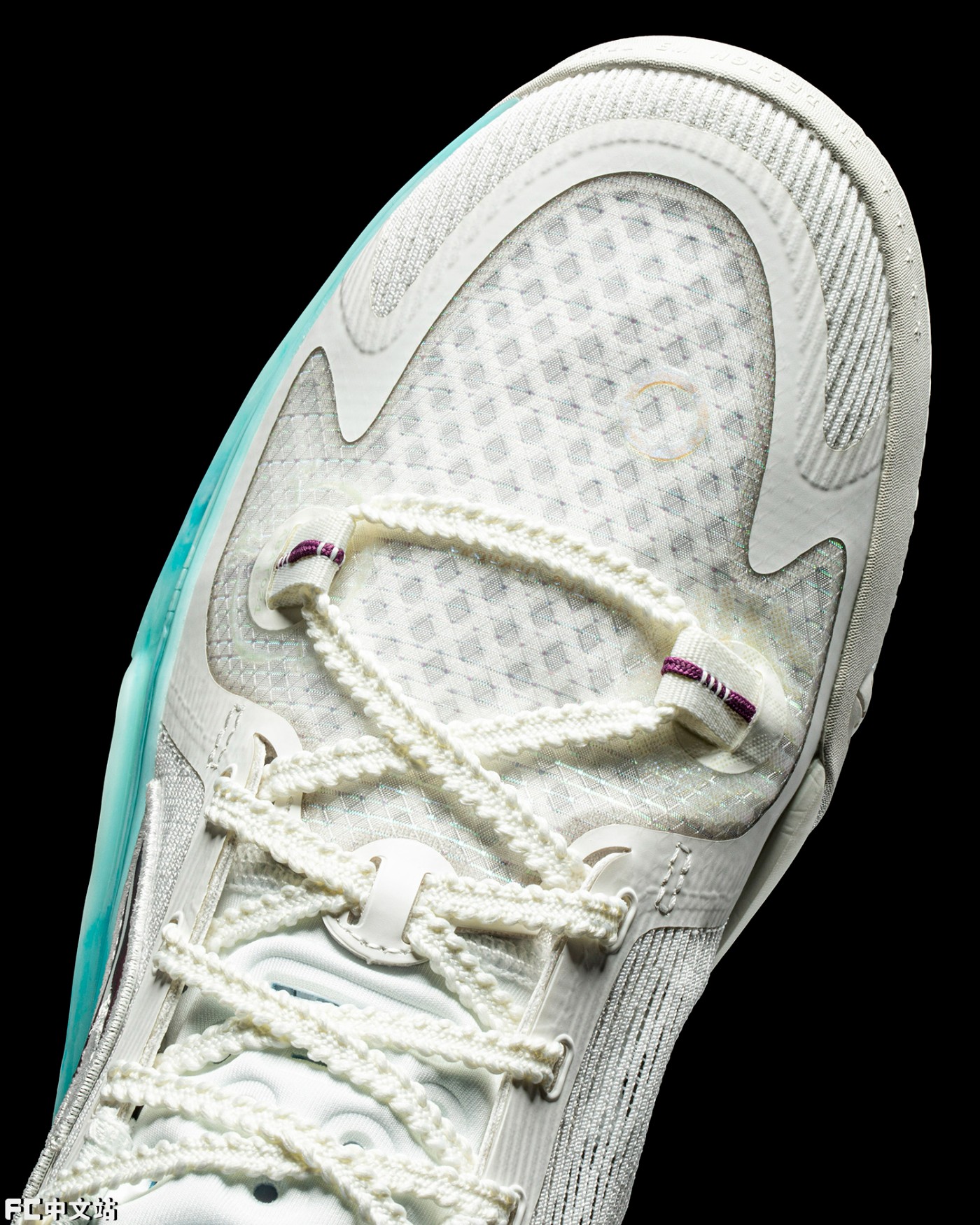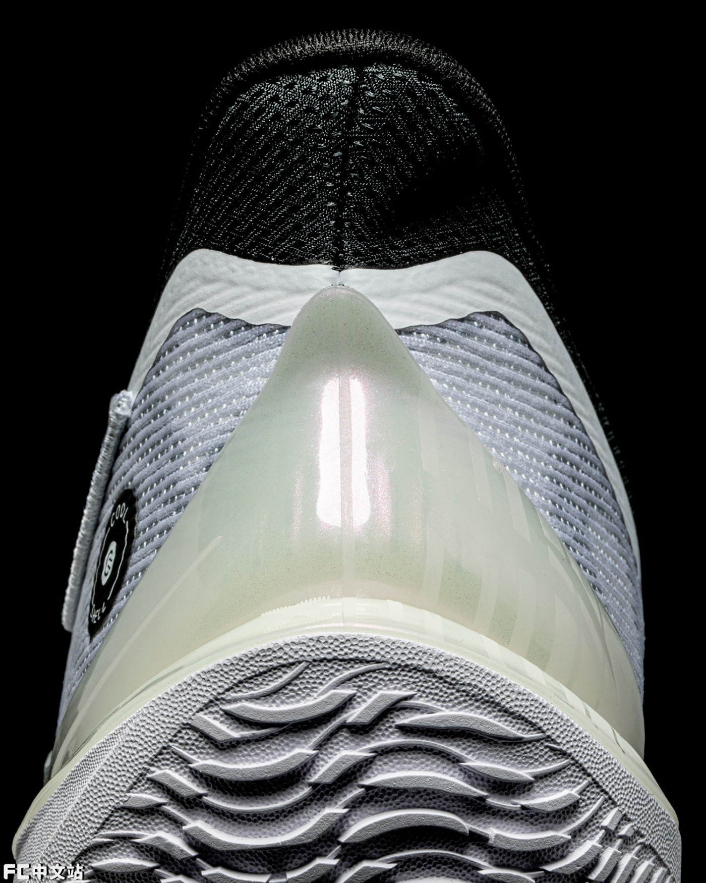 后跟半透明 TPU 加入珠光质感,仔细看会发现里面还有条纹装饰,再次彰显这双配色的细致设计。