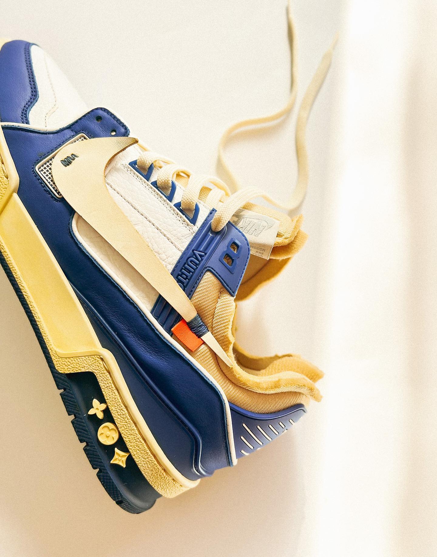 近日,Huy Le 再度出手曝光了 Nike x OW x LV Tranier 实物,快来看看你种草了没有。