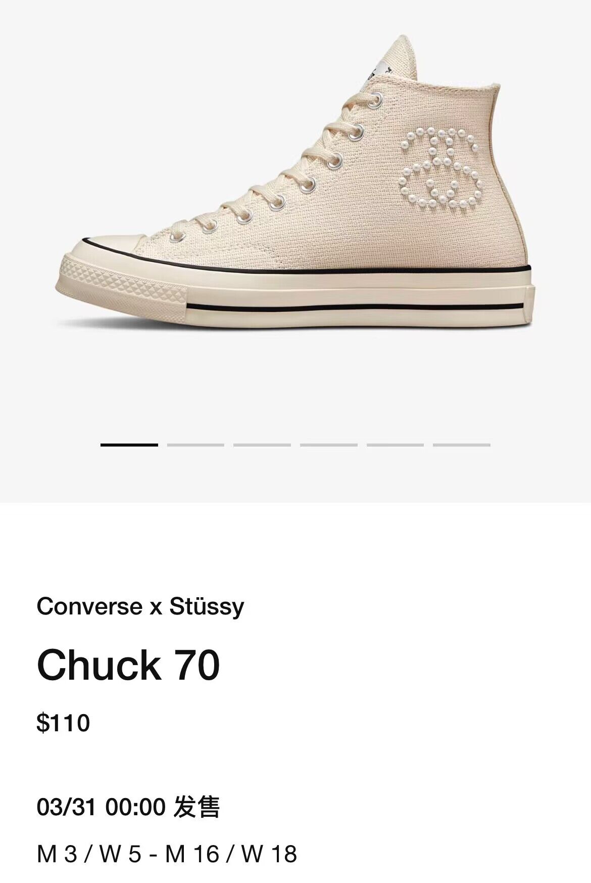 近日,Stüssy x Converse Chuck 70 Hi 正式上架美区 SNKRS APP,将于 3 月 31 日发售,相信不久就会上架 SNKRS 中国 APP,大家不妨期待一波。