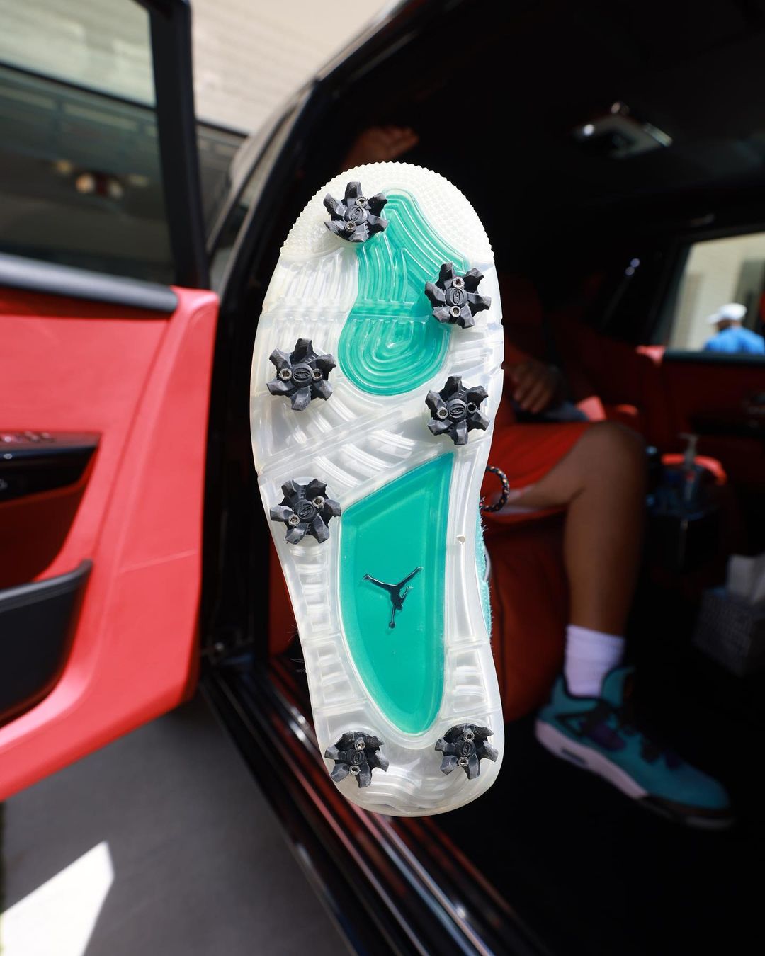 抬脚秀了一波外底,7 颗专业鞋钉彰显高尔夫鞋的身份。