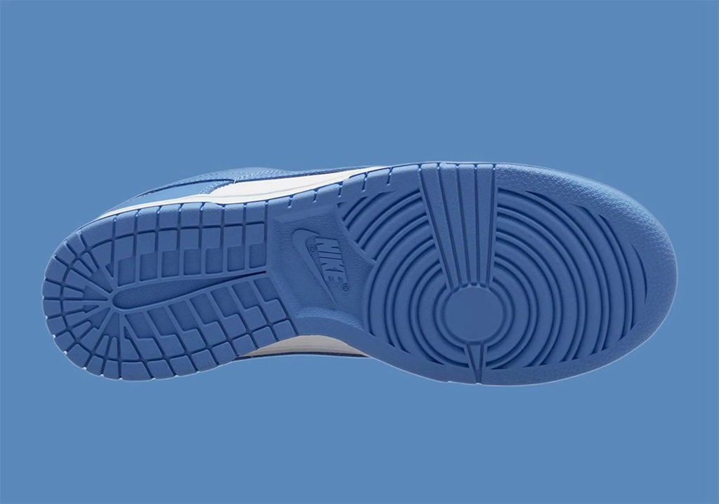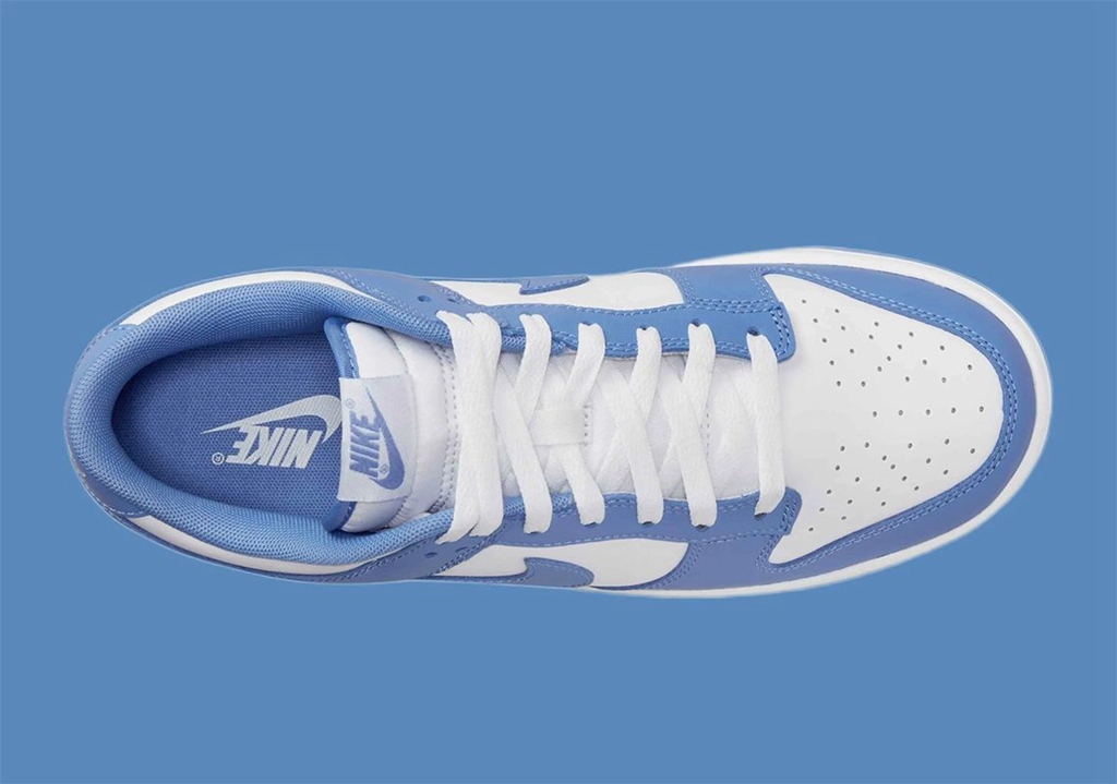 整体依旧是传统的 Dunk Low 造型,鞋身配色非常简单,白色为底,框架以浅蓝色装扮。