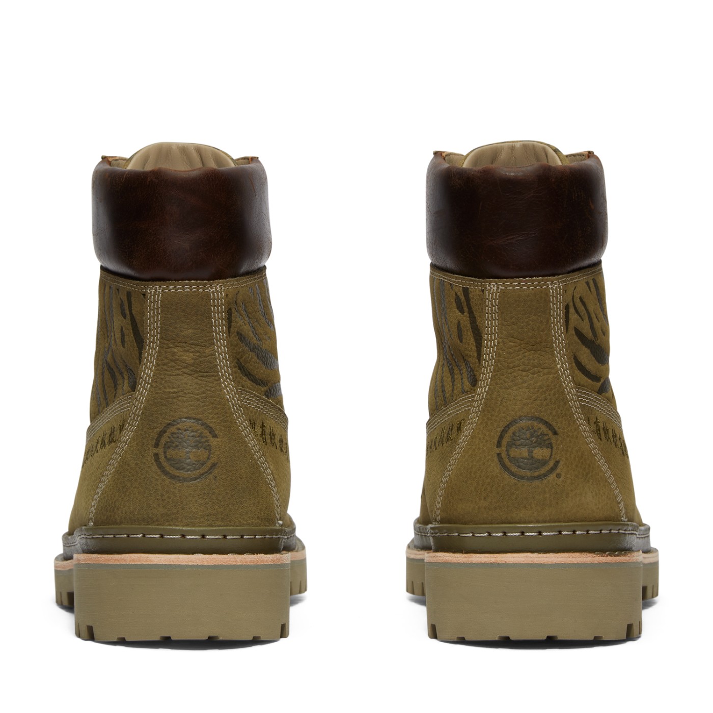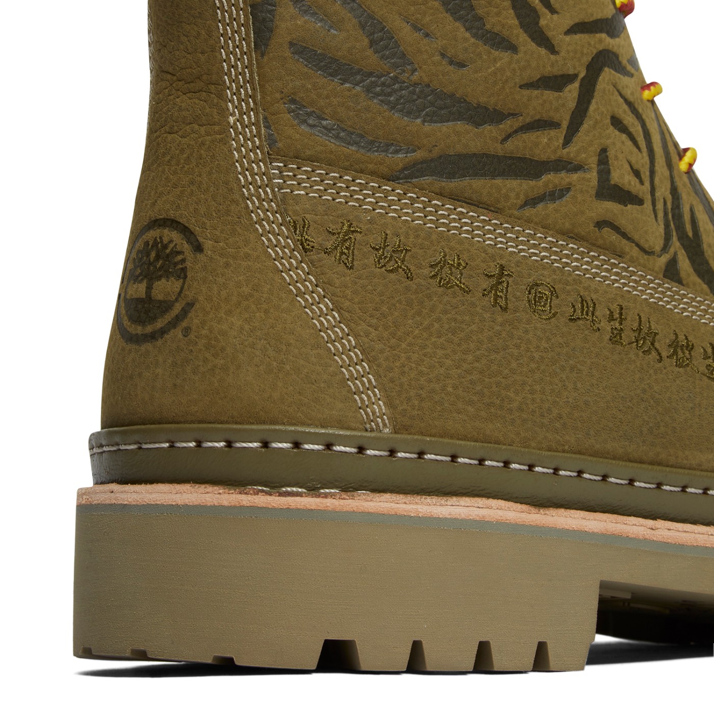 此次联名以 Timberland® 品牌中最经典的 Timberland® 6 寸靴款为蓝本进行创作,分别带来一绿一黄两款配色,绿色呼应主题,黄色则释放传统韵味。