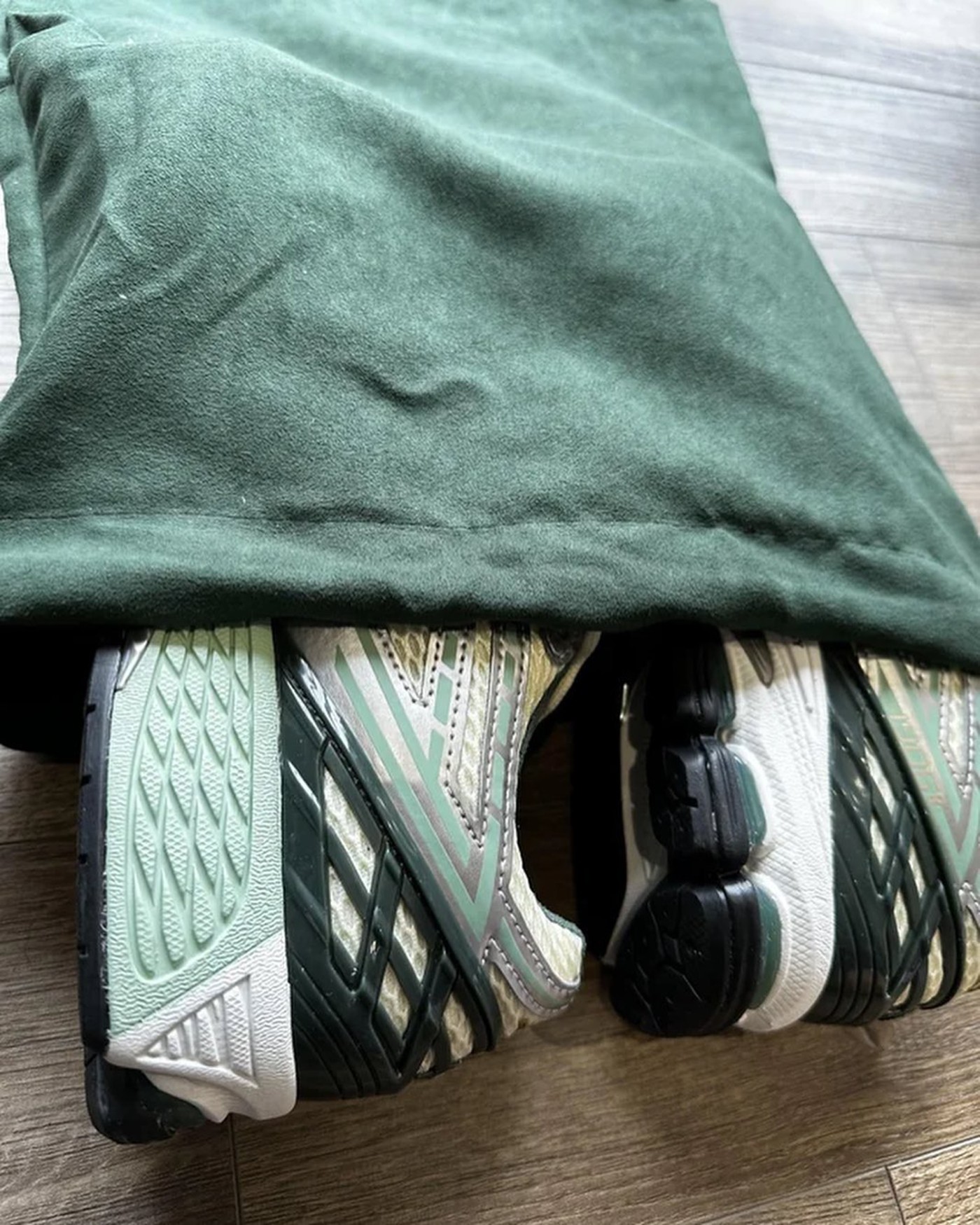 同时,随鞋除了附赠携带外,还带有一个墨绿色防尘袋,可见双方诚意及规格。