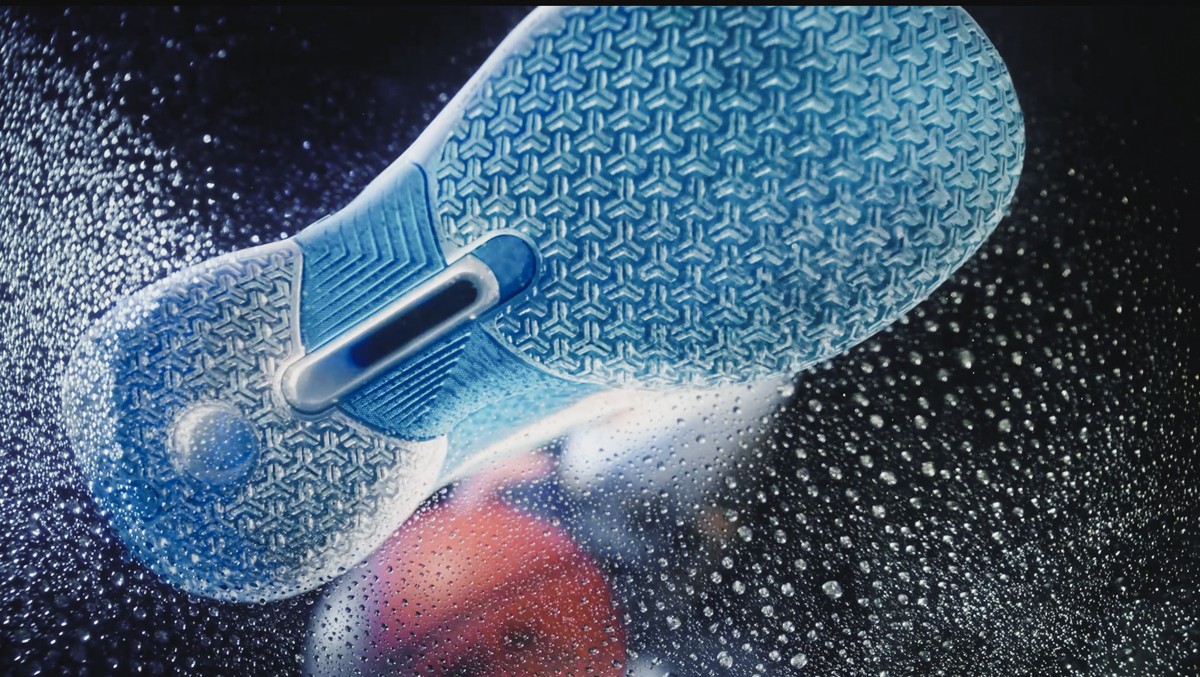 从目前曝光的实物来看,采用非对称的犀利条纹勾勒鞋身,标志性的大面积支撑依旧环绕鞋身两侧。