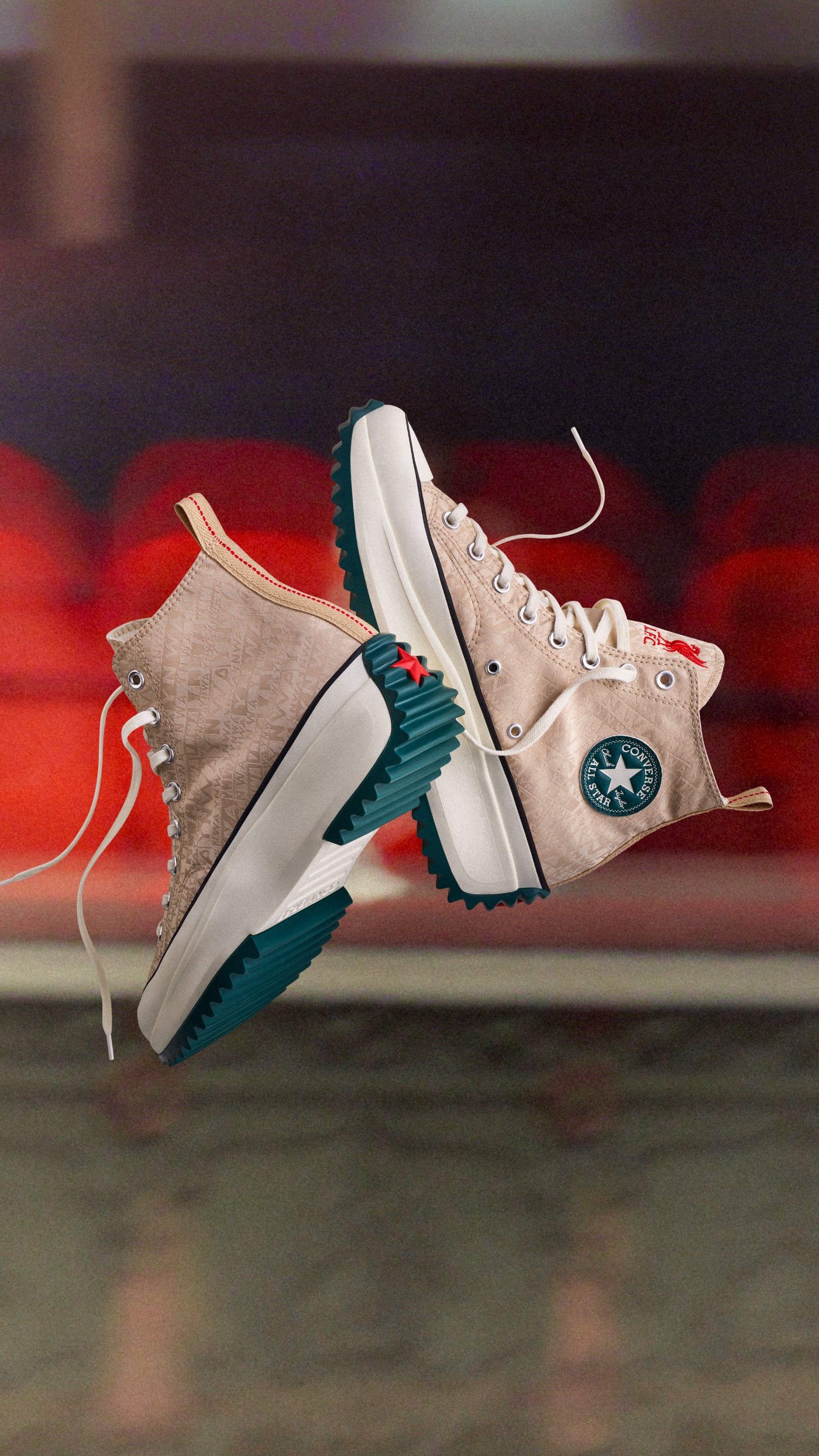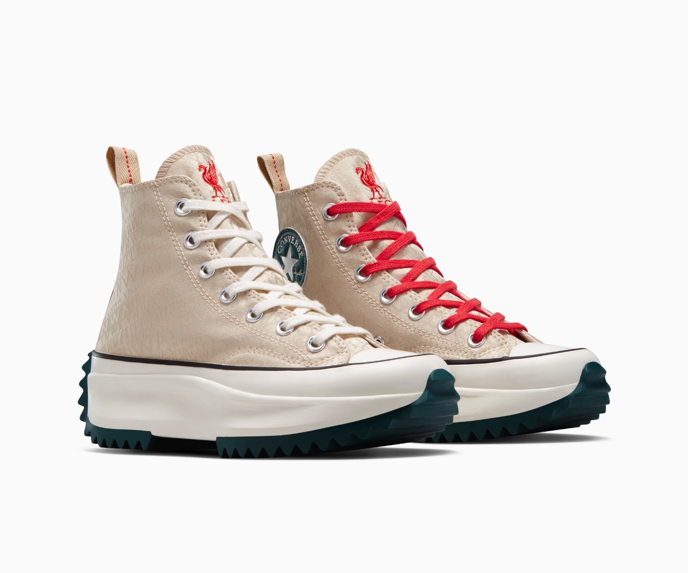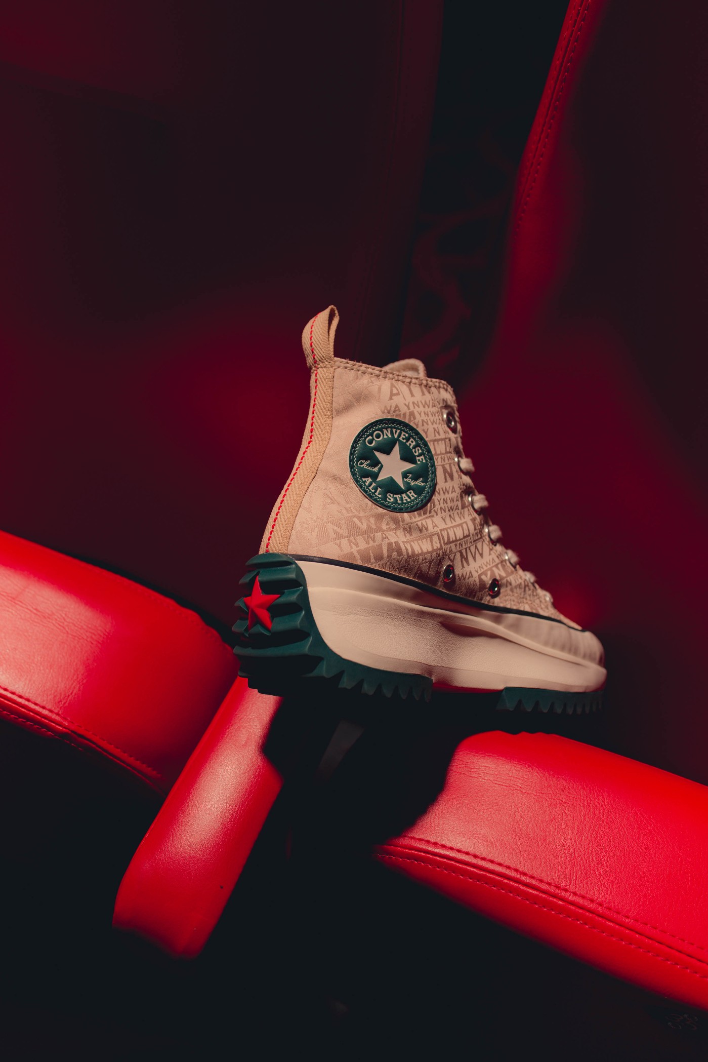 第二双采用 Converse Run Star Hike 鞋型为蓝本,淡粉色妆点,红色和绿色点缀。