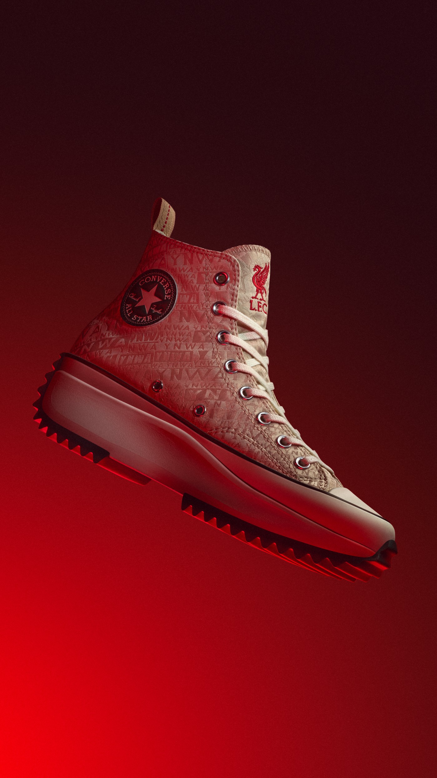 鞋盒处印有 Converse 和利物浦球队 Logo,彰显联名身份。