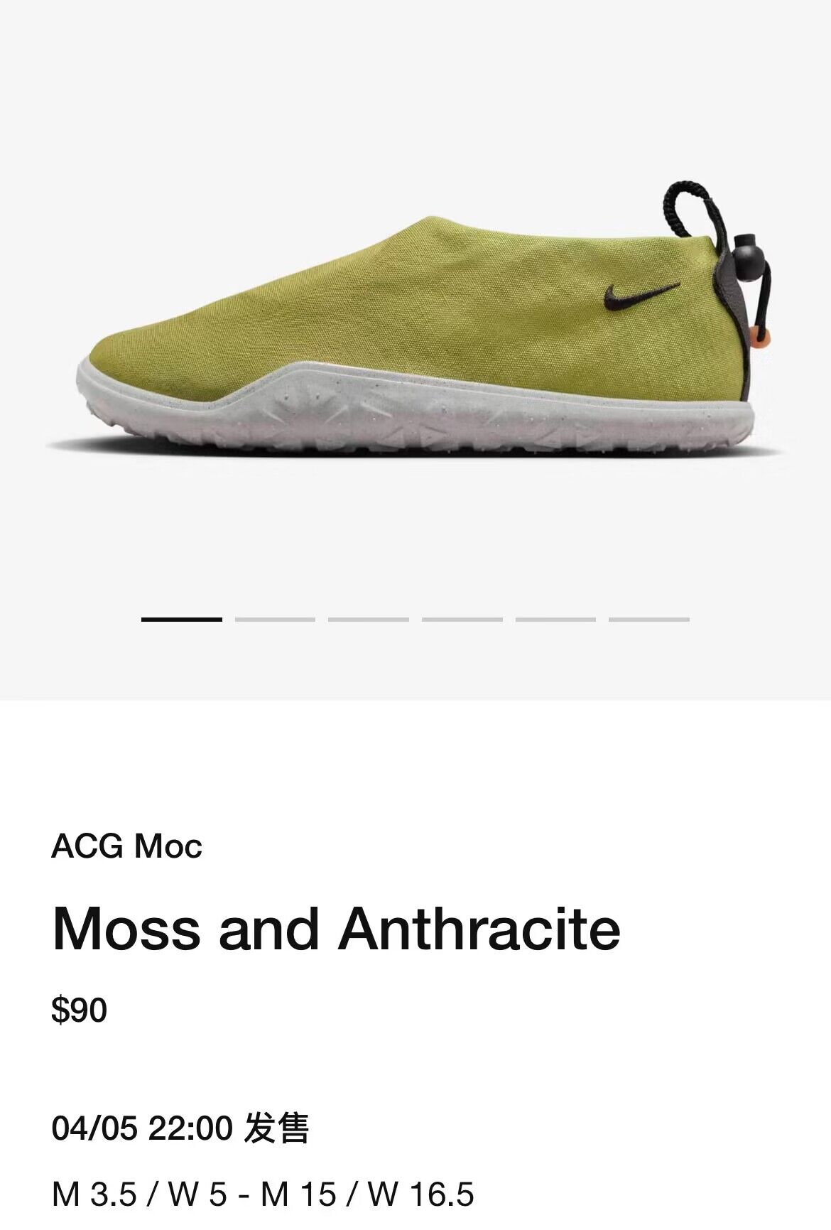 近日,一款全新配色的 Nike ACG Air Moc 正式上架美区 SNKRS APP,将于 4 月 5 日登场。