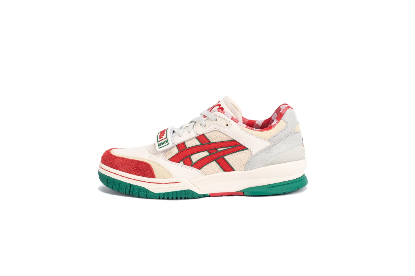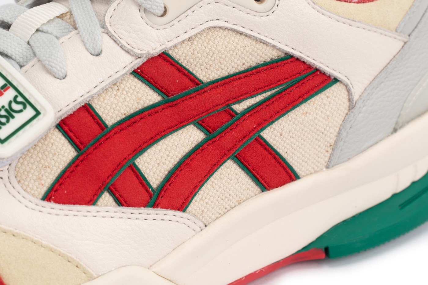 整体配色参考意大利传统国旗的同时融入四川绿竹色调设计,红色和米色妆点,呼应鞋款主题。