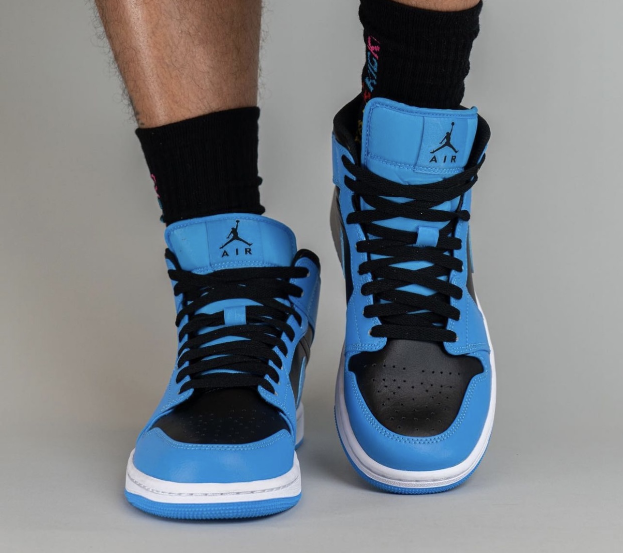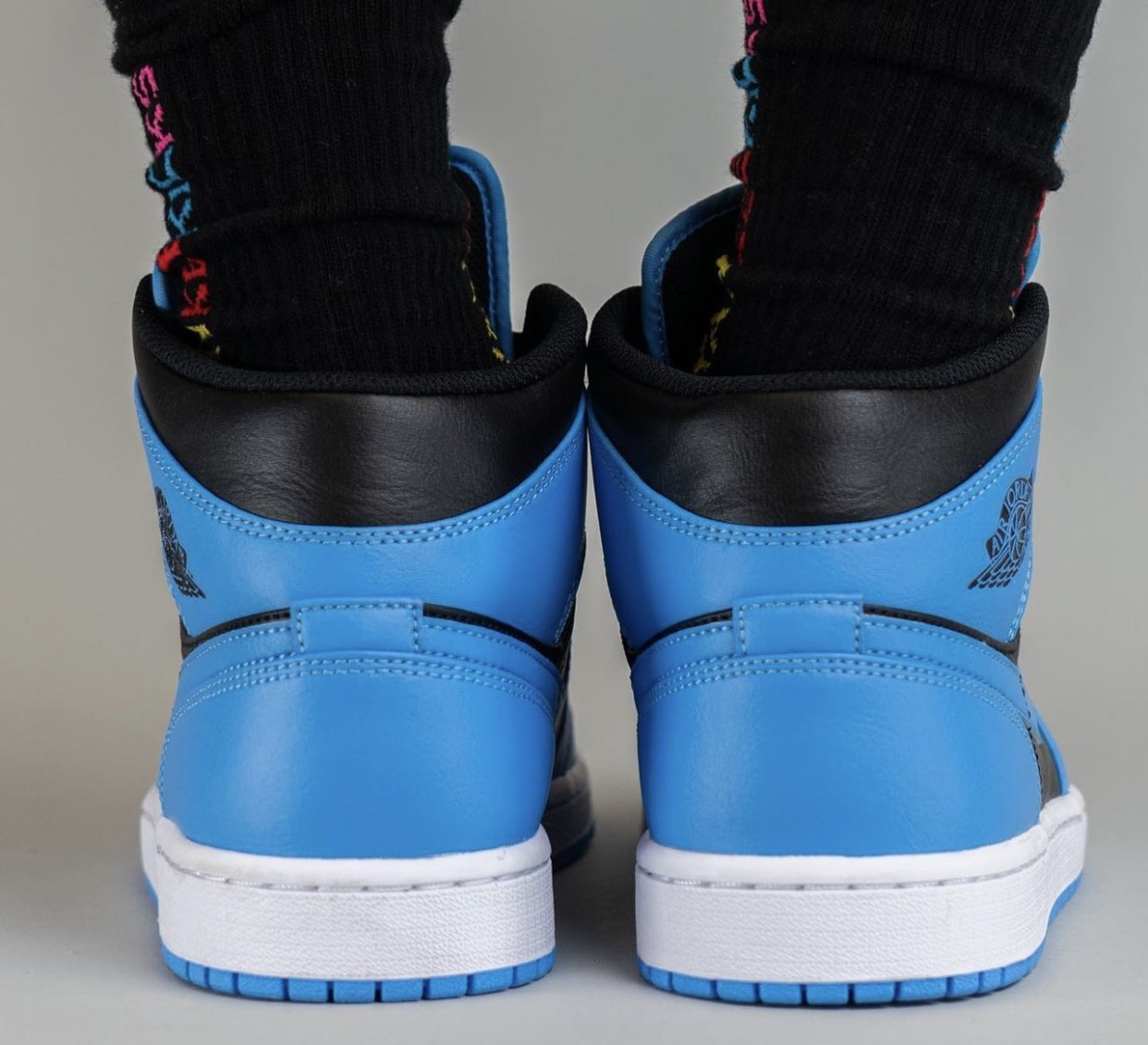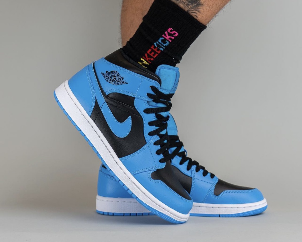 近日,全新 Air Jordan 1 Mid “University Blue” 上脚图曝光。