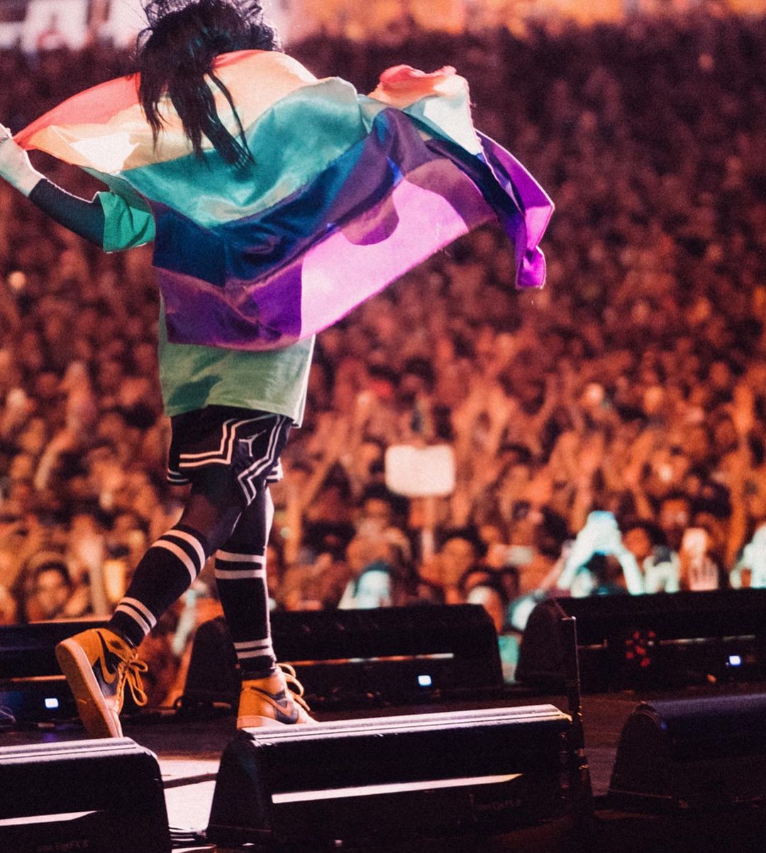 Billie Eilish 最近频频上脚 Air Jordan 1,前阵子在演唱会穿了「北卡蓝」OFF-WHITE x Air Jordan 1。