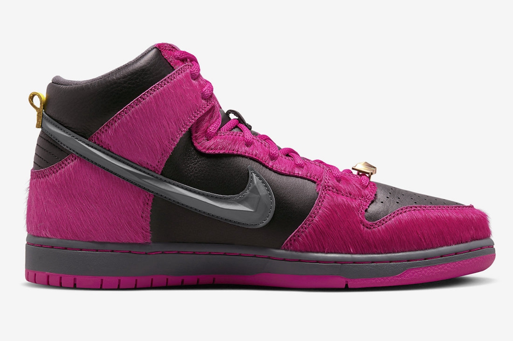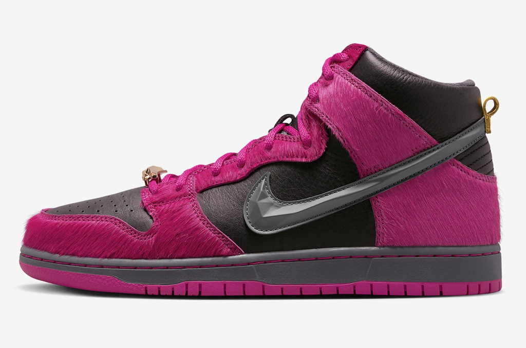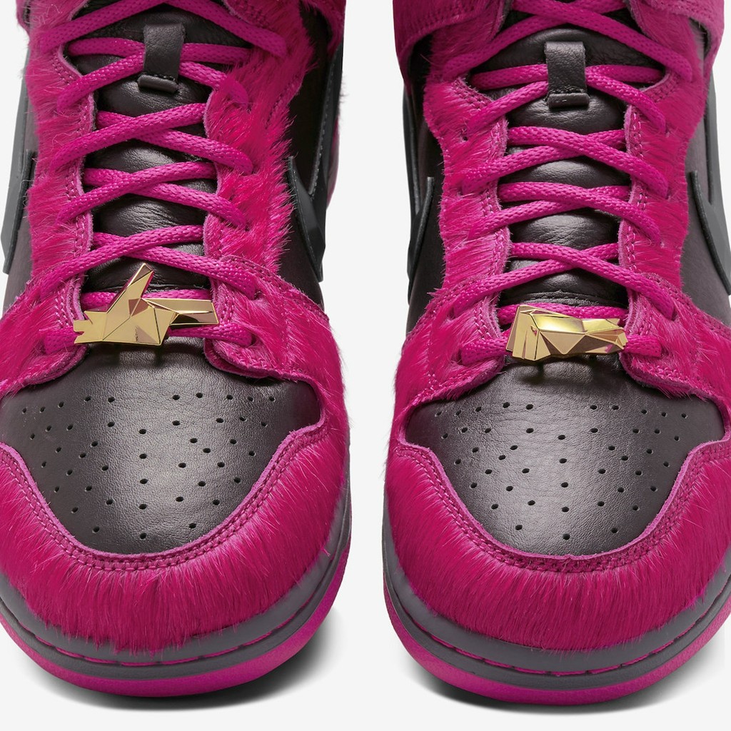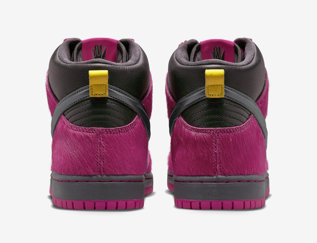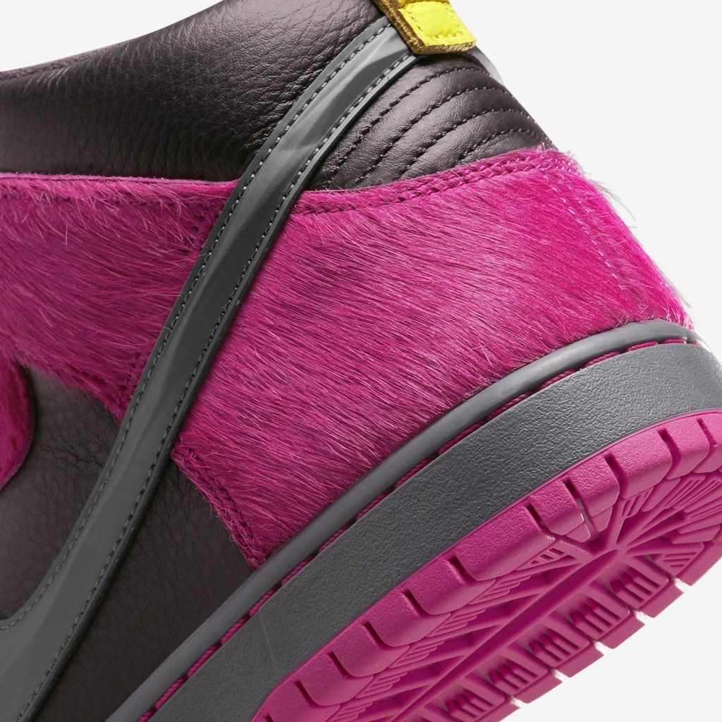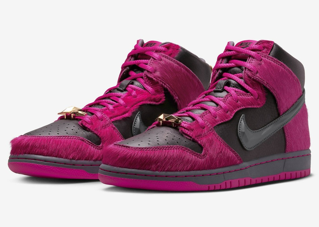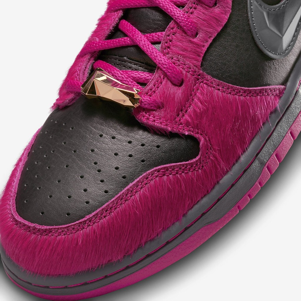 高帮版本相比低帮则来的更加浮夸,最吸睛的就是遍布鞋身的粉色马毛材质,简直不要太骚气。