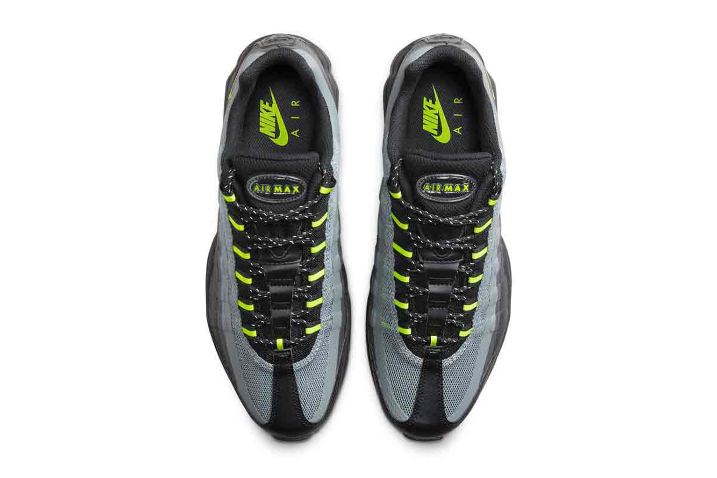 整双鞋采用 Air Max 95 最为经典的「Neon」配色呈现,灰绿双色组成的造型视觉效果格外百搭。