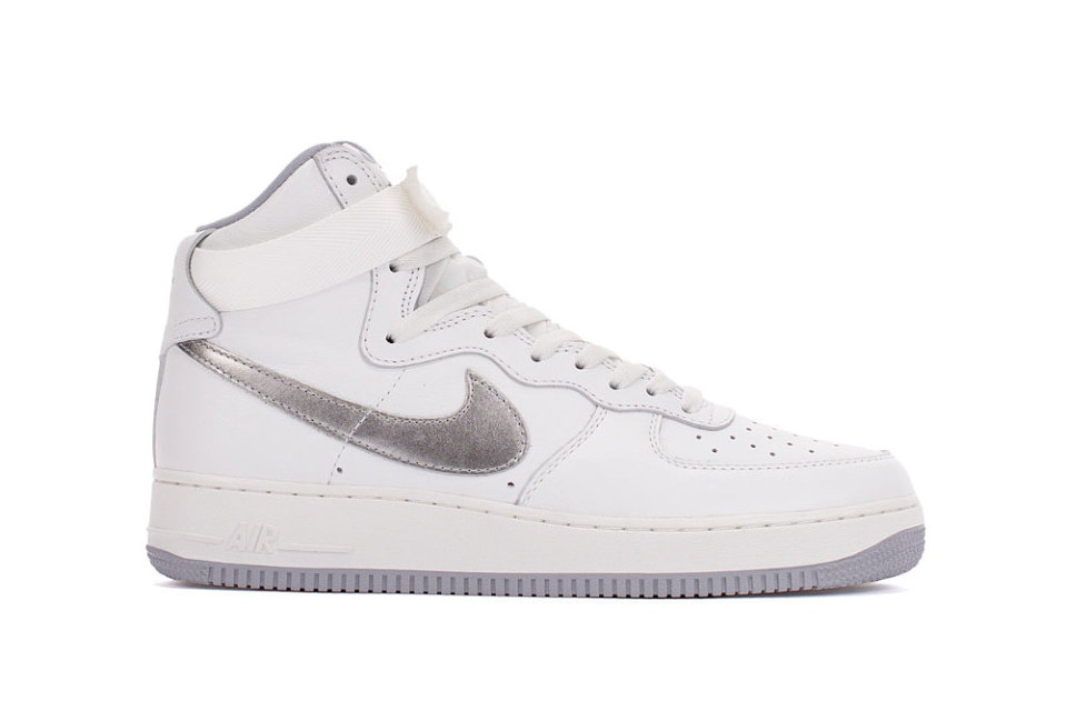 整双鞋的设计灵感源自于元年配色的 Nike Air Force 1 High,经典的纯白造型,加之银色细节,视觉效果格外简约。