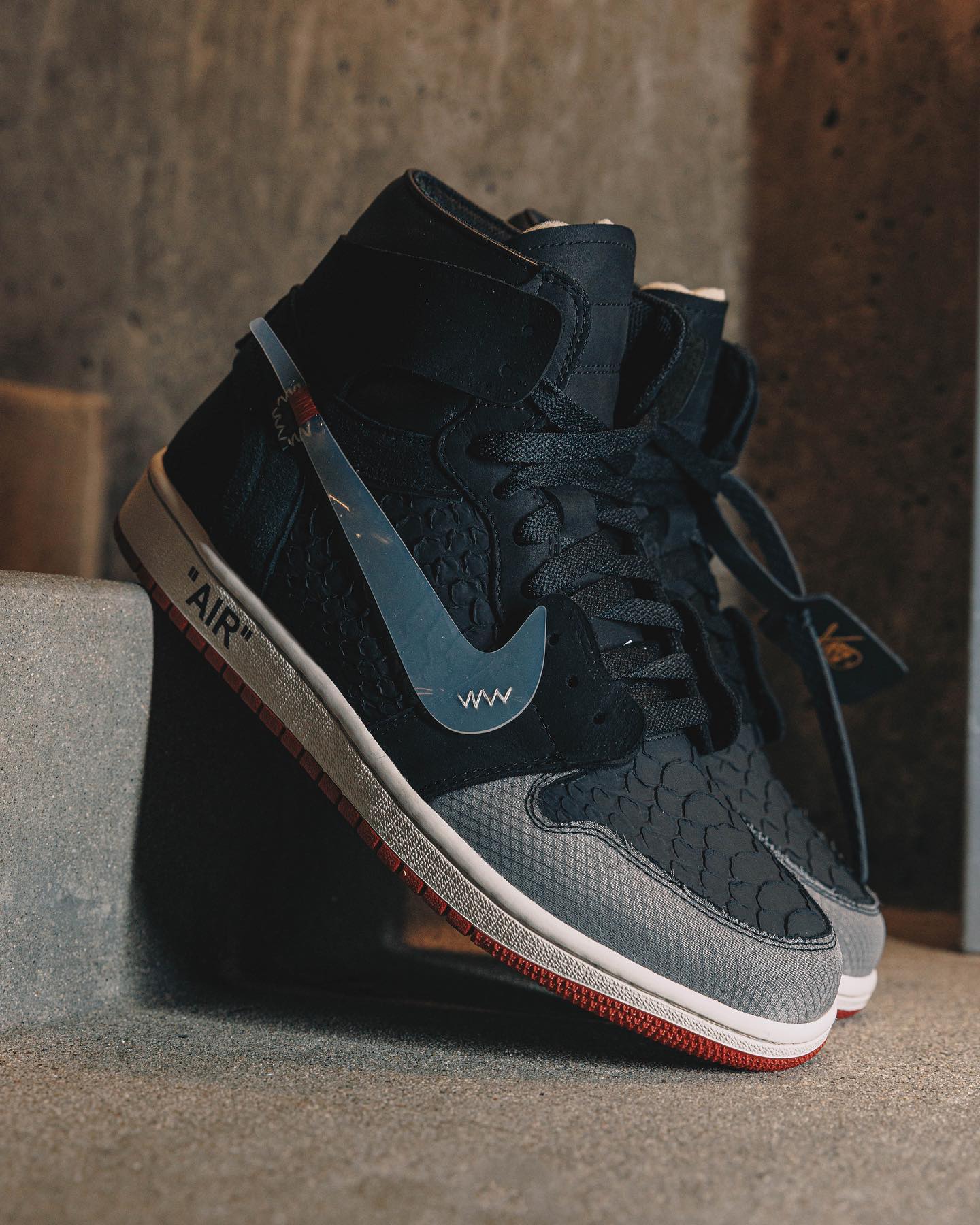 同时还有 OFF-WHITE x Air Jordan 1 的定制款的曝光了,真的帅。