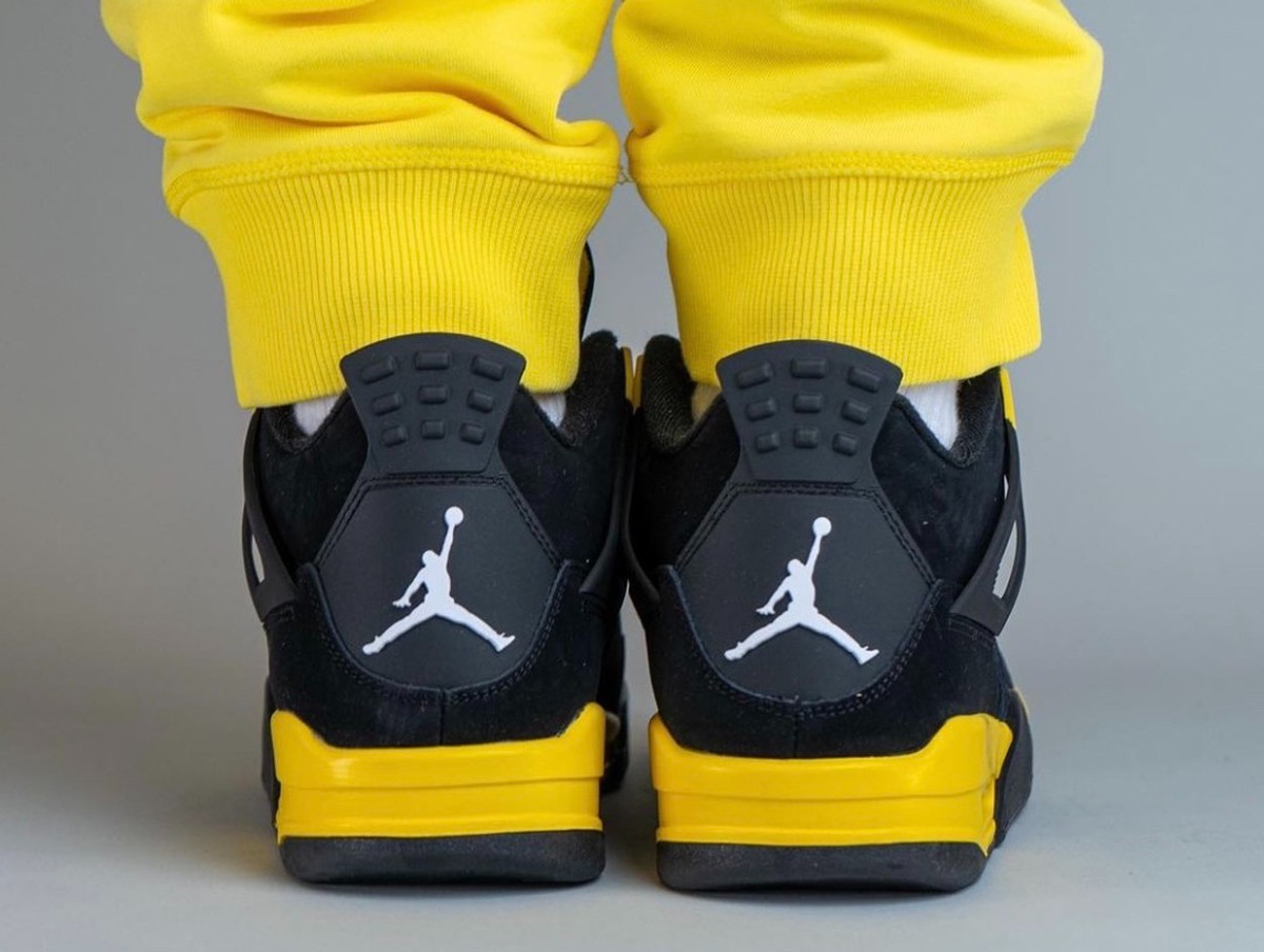 后跟 Logo 也是众多 AJ4 玩家最为关心的一点,而这双雷神 AJ4 作为非元年配色,复刻版同样为 Jumpman 后跟。