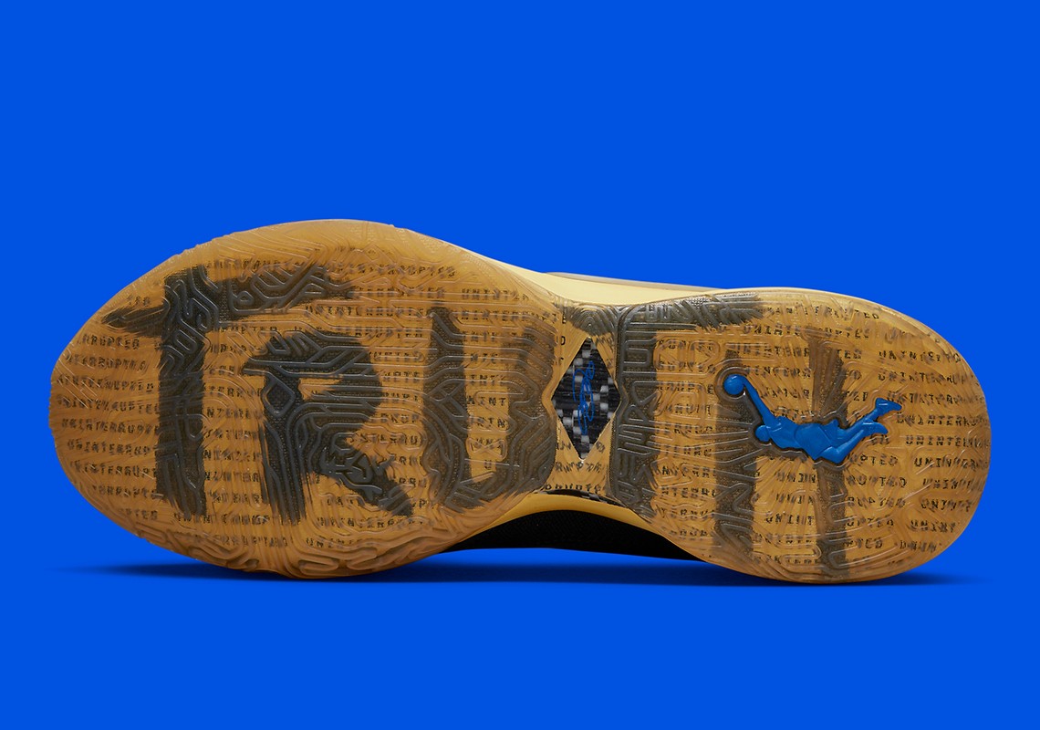 整双鞋采用黑色为主调,辅以蓝色、白色妆点,呈现出与以往 UNINTERRUPTED 联名的相同配色方案。