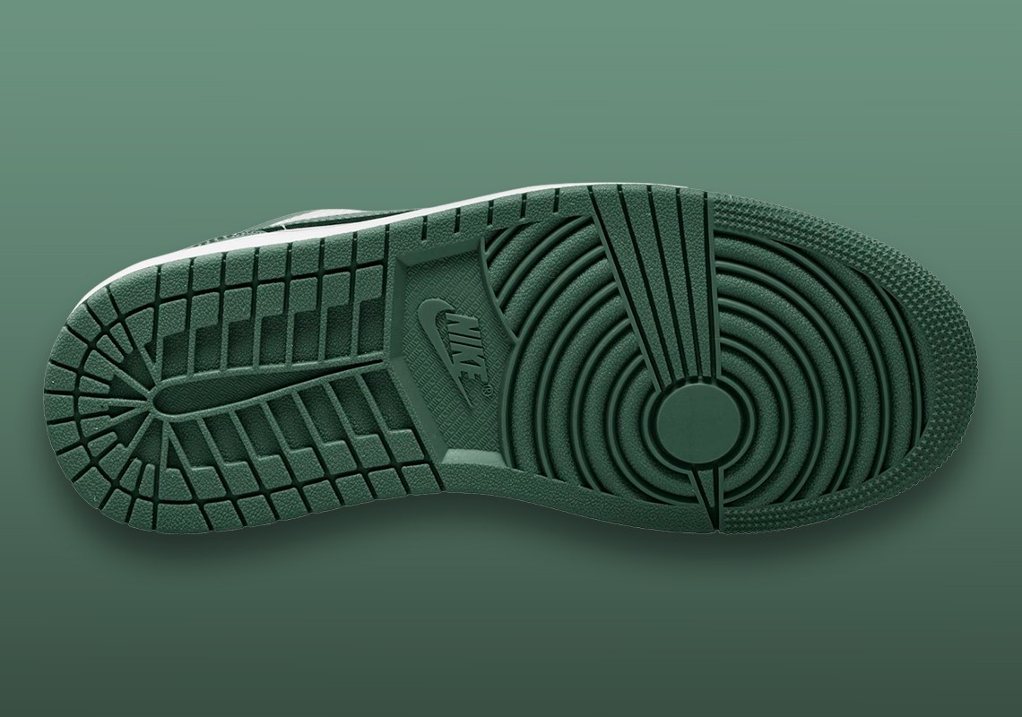 最后以白色中底搭配墨绿色外底收尾,完成整双鞋设计。