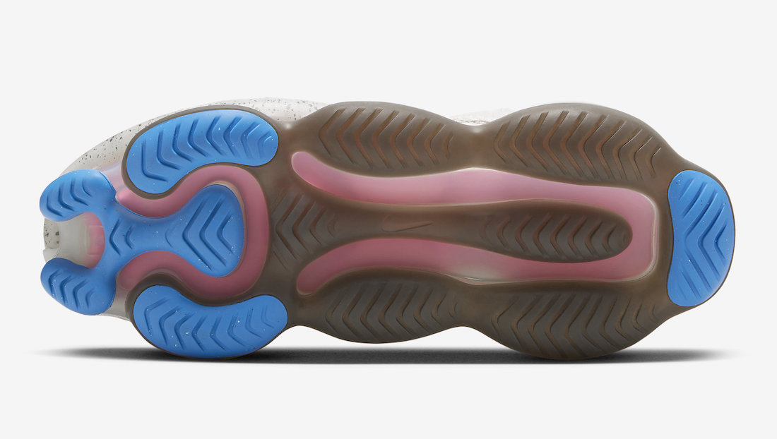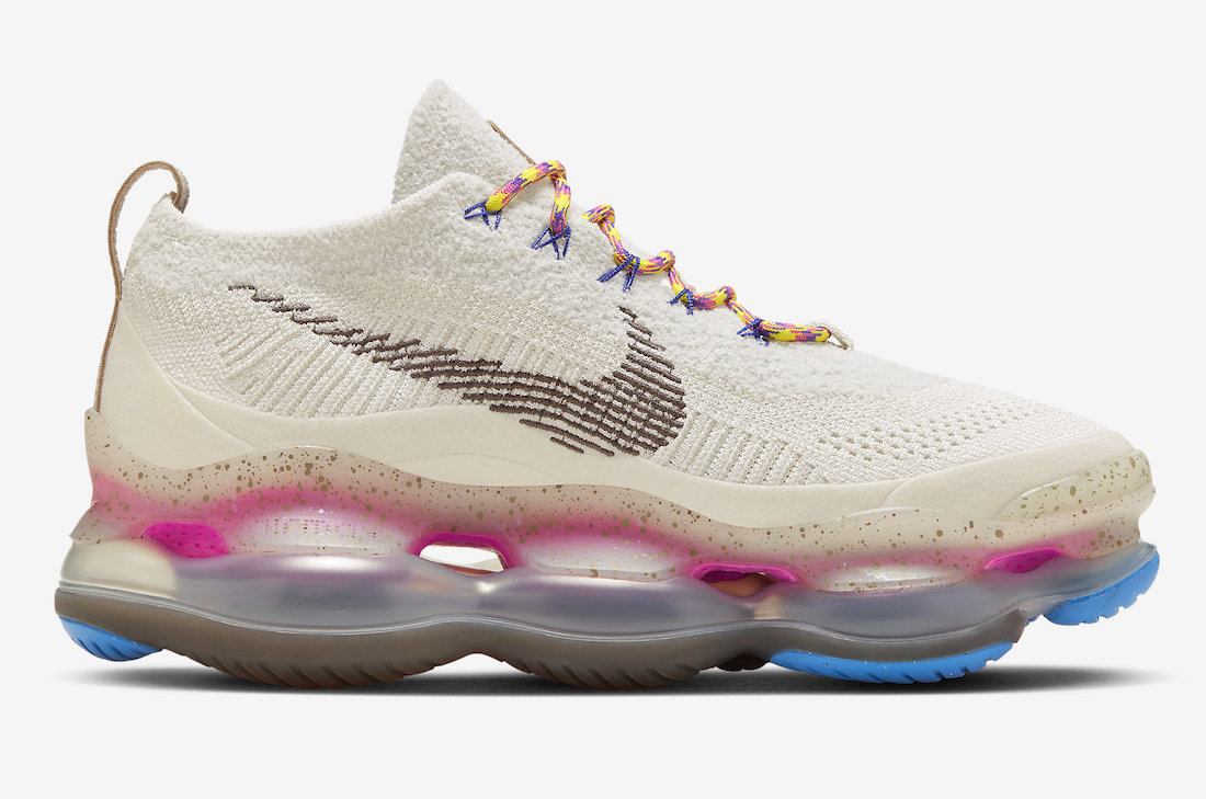 最近 Air Max Scorpion 有一款新配色曝光,鞋身采用浅卡其色覆盖,细节部分选用鲜艳的黄、粉、蓝搭配呈现,配色设计非常贴合夏天徒步旅行场景。