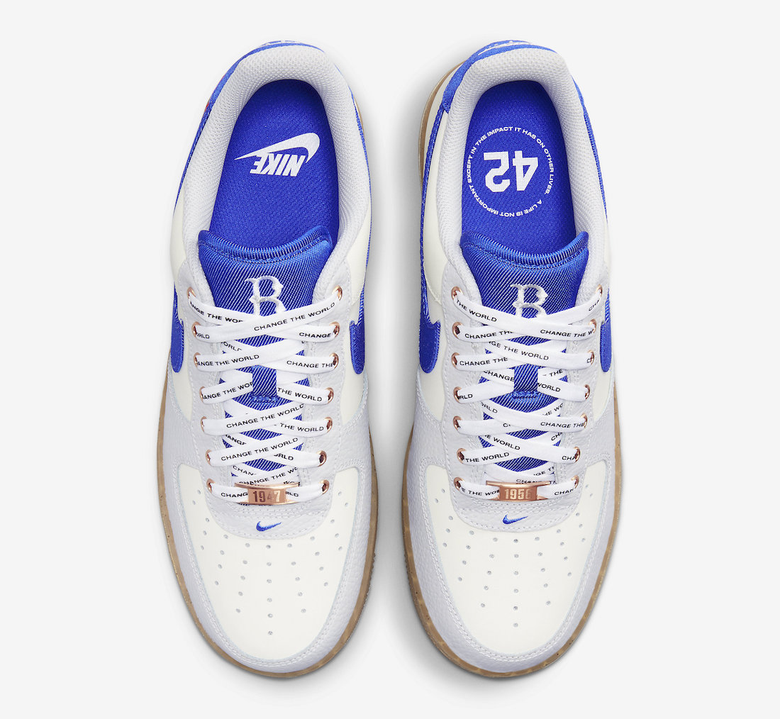 鞋后跟和鞋垫印有 “42” 字样,是杰基·罗宾逊身披的球衣号码。