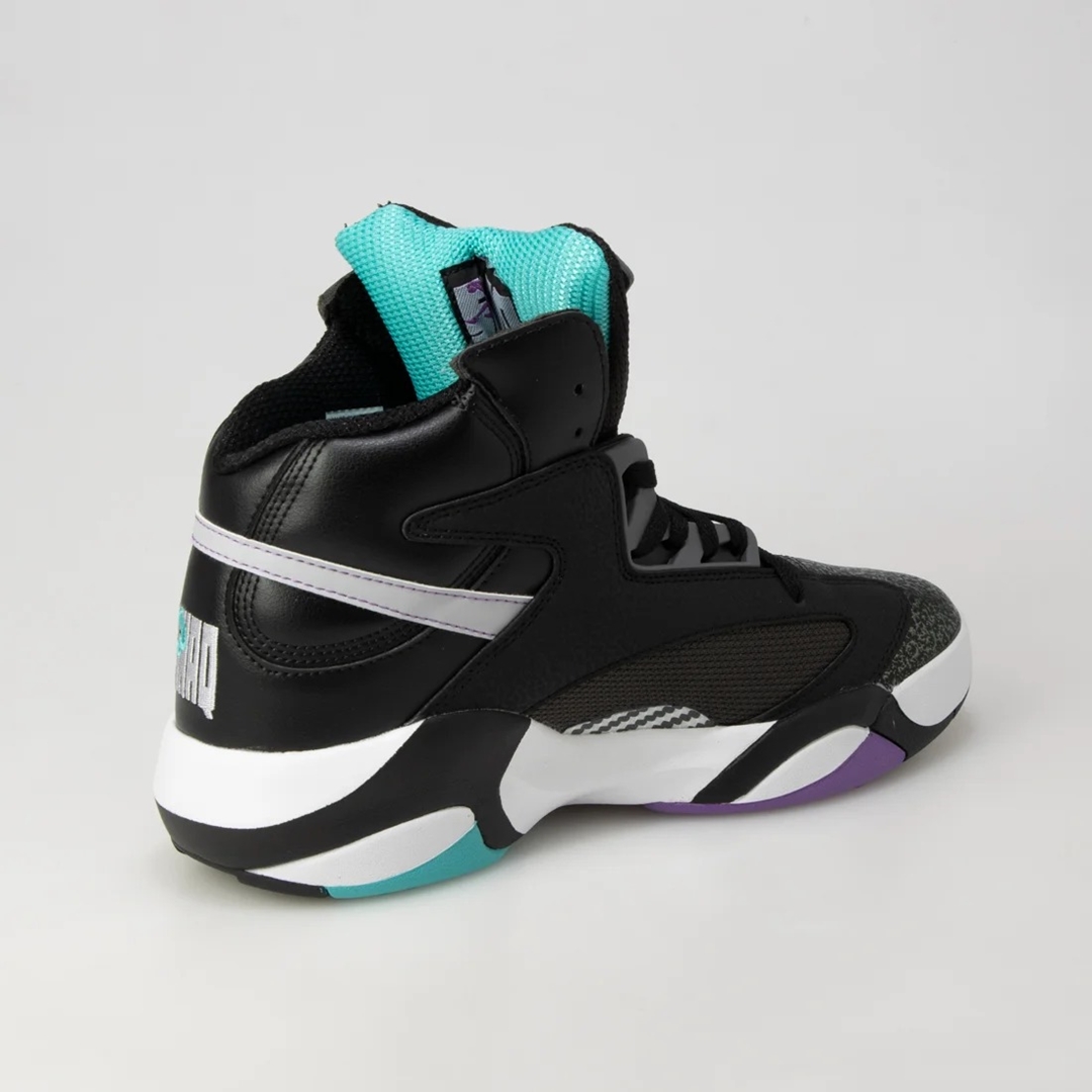 后跟处 “SHAQ” 字样上方的暴扣 Logo 彰显出奥尼尔签名球鞋的身份。