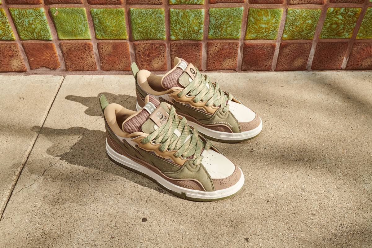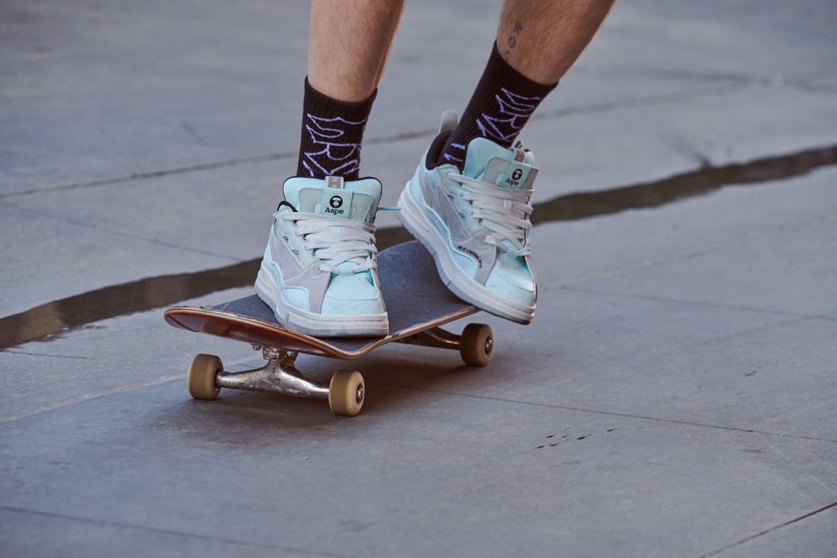 此次联名 AAPE 以李宁滑板的全新鞋型——惟吾 GOLDEN 为基础打造,相比以往而言会更具复古、街头韵味。