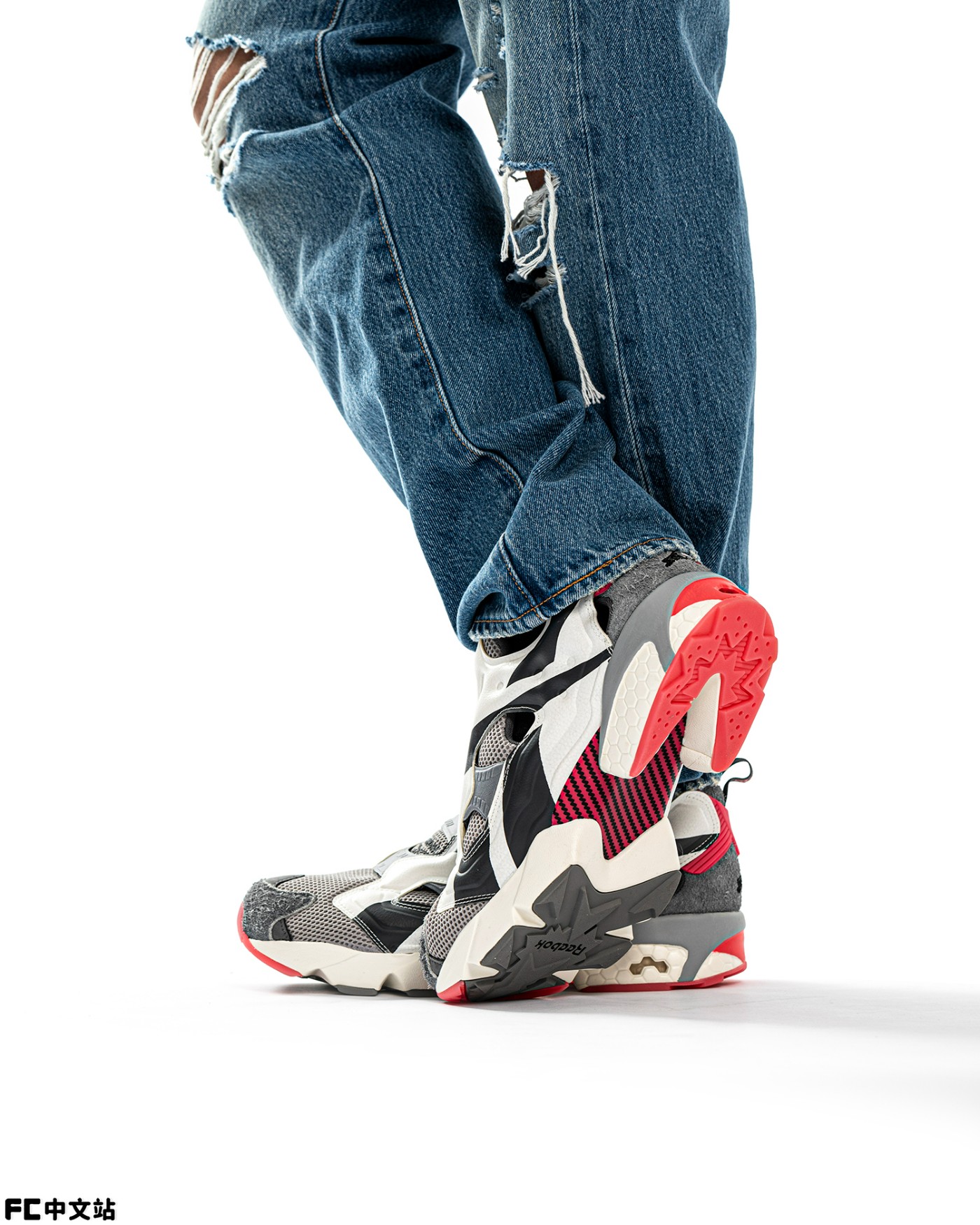来到上脚环节,诞生于 90 年代的 Reebok Insta Pump Fury 时至今日依然透露出未来、科幻的气质。