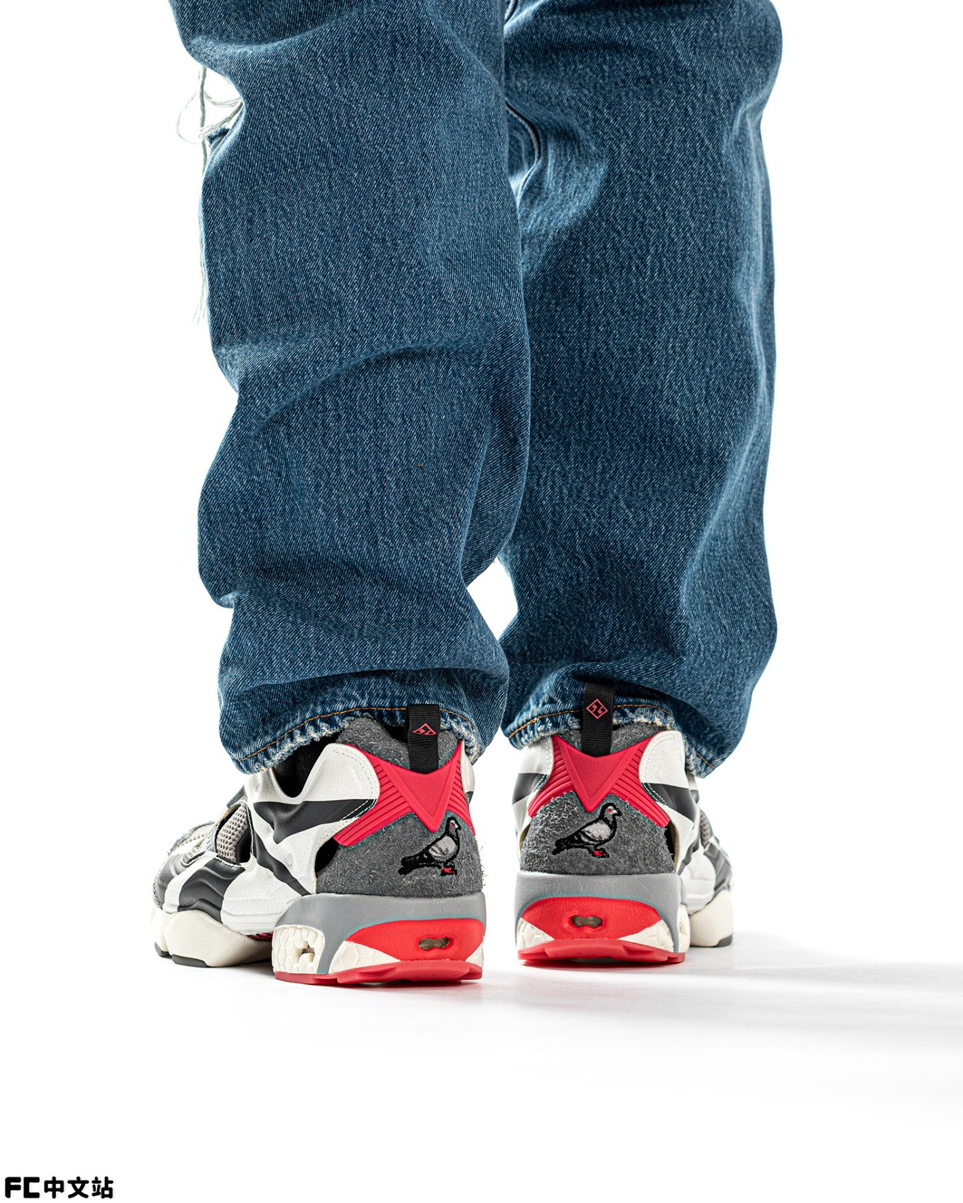 细节方面,粉红色出现在鞋舌充气泵的鸽子剪影,还原 Staple 联名独有气质。